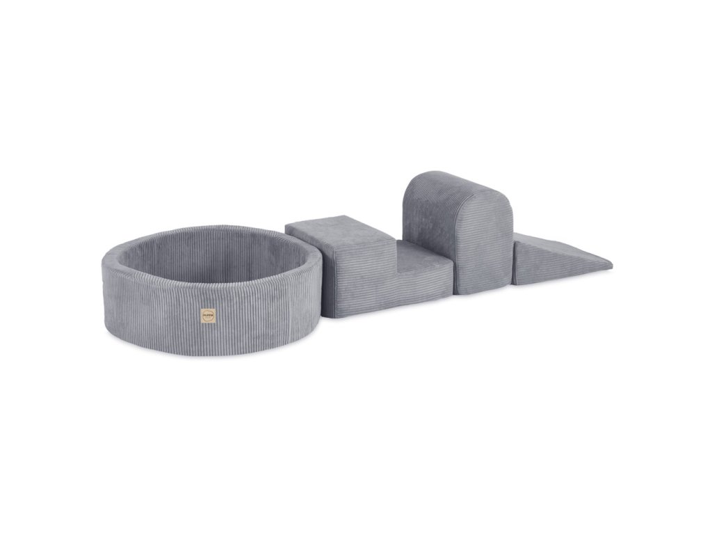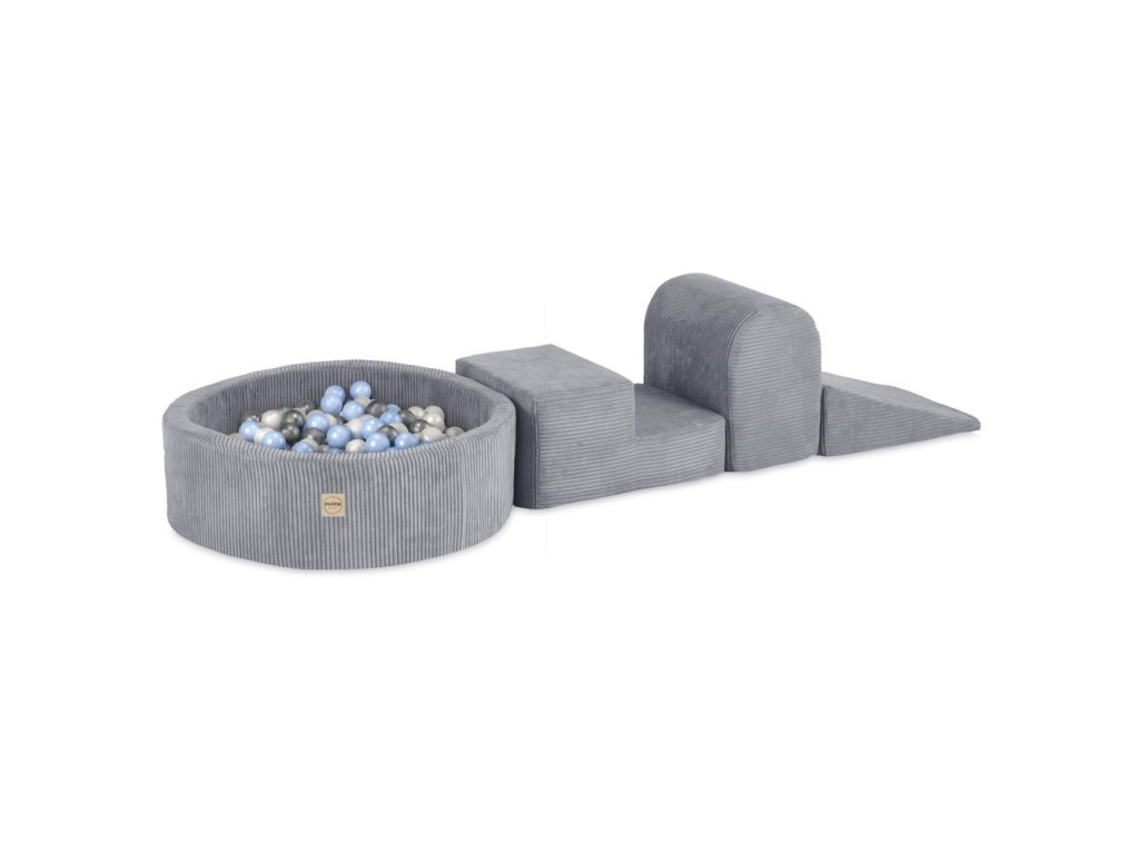 Játszókészlet medencével (3 elem + medence Ø 90 × 30 cm) 200 labdával szürke