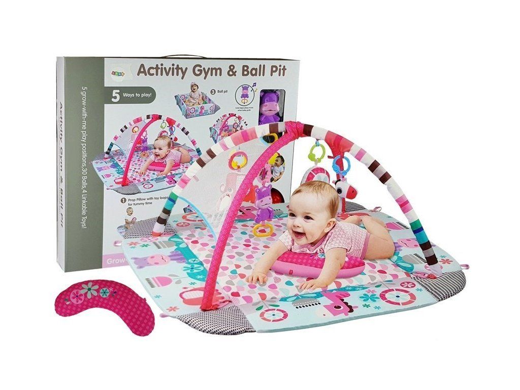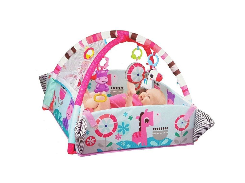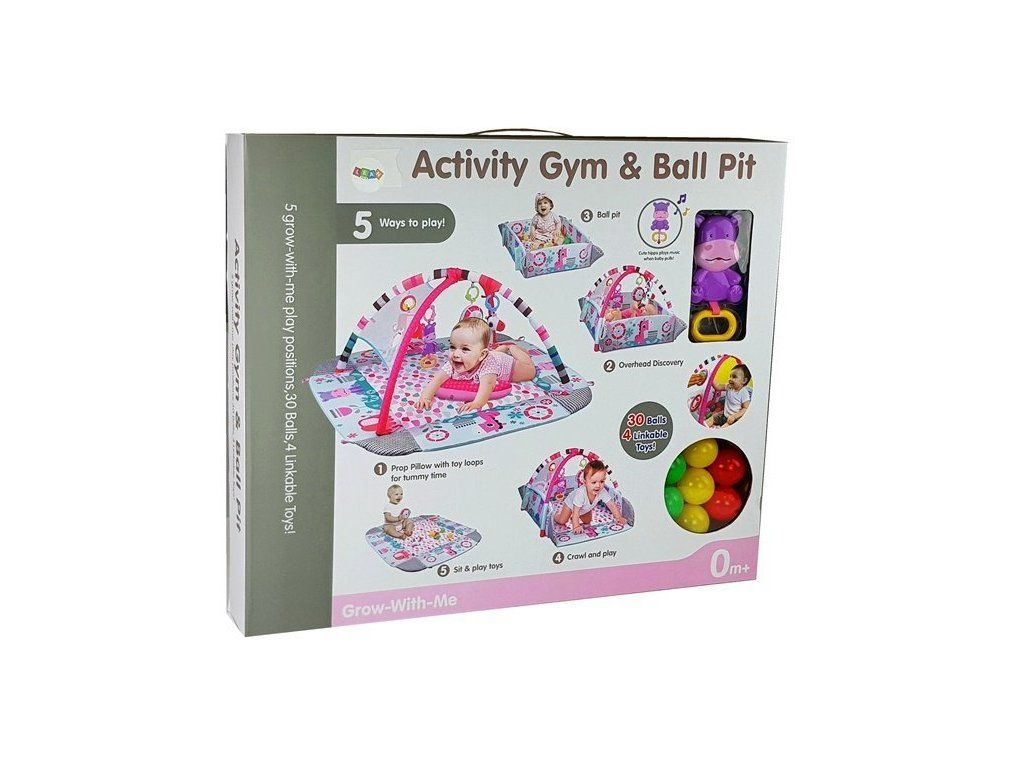 A játszótakarónak 5 különböző lehetősége van: játszótakaró rácsokkal, csak játéktakaró, oldalt összehajtva, medencét alkotva vagy rácsokkal. A színes dizájn felkelti a gyermek kíváncsiságát és segíti a látás fejlesztését. A termékhez golyók tartoznak, amelyeket a medencébe lehet dobni, hogy felejthetetlen szórakozást nyújtsanak. A készlet tartalmaz egy elemes vízilót, csak húzd meg a fogantyút és hallgass zenét.