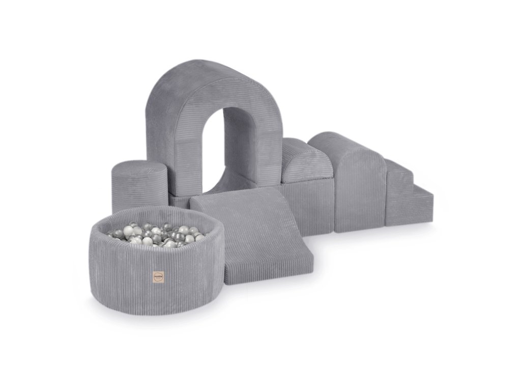 Bemutatjuk az egyedülálló játszótér, ahol a játék minden pillanata igazi utazássá válik gyermeke álmainak világába! Ez a készlet a funkcionalitás és az esztétika tökéletes kombinációja, a legjobb minőségű kordbársonyból készült, amely egyszerre tartós és kivételesen kellemes tapintású. Biztos lehet benne, hogy az Ön gyermeke biztonságban játszik és élvezi minden elem kényelmét.