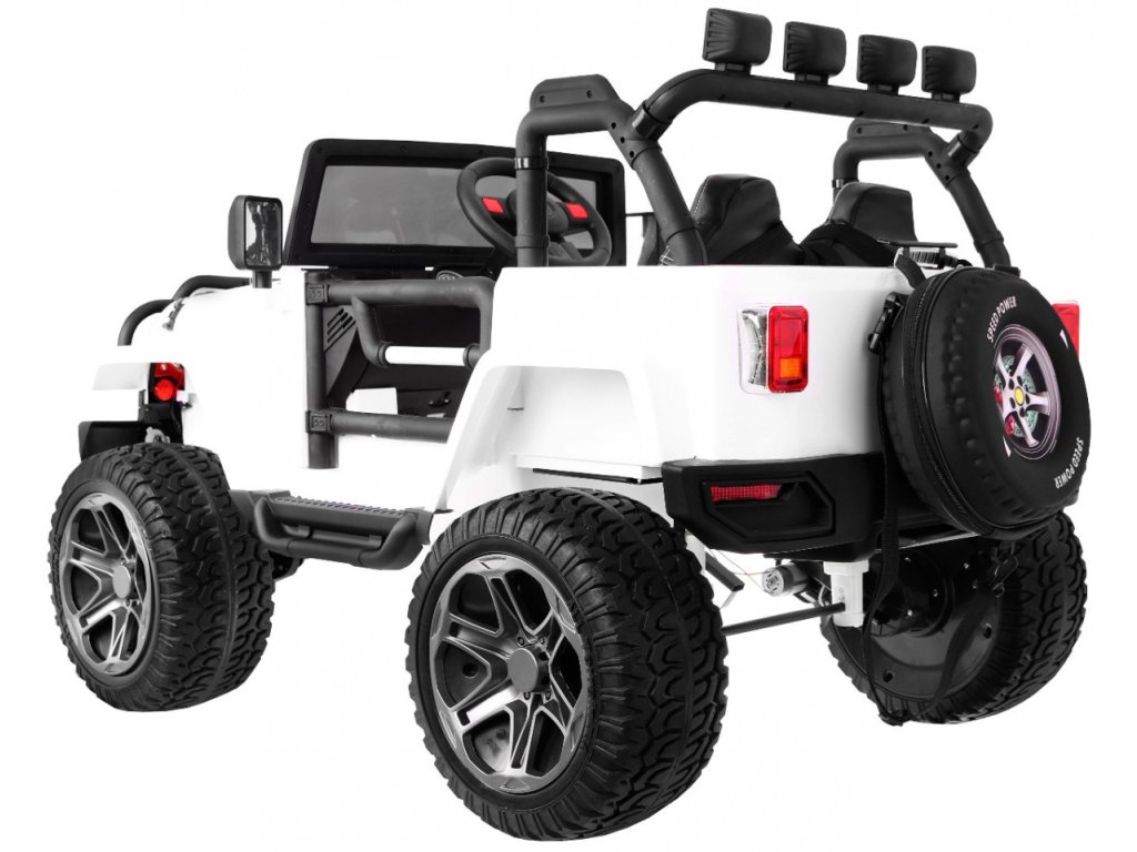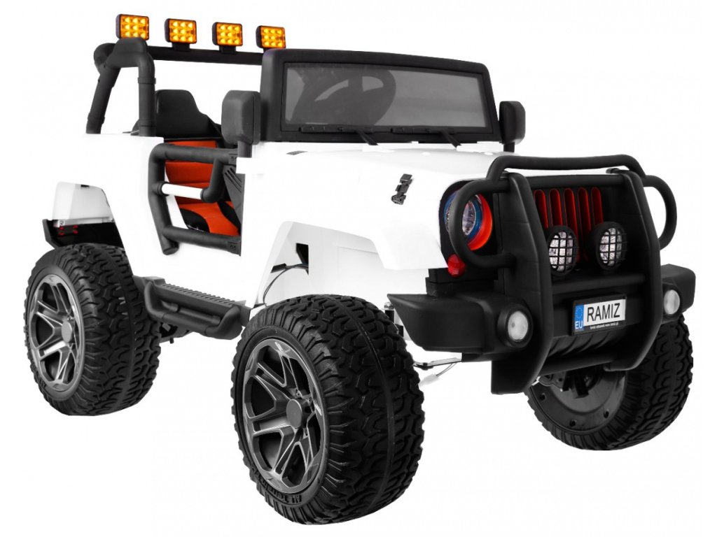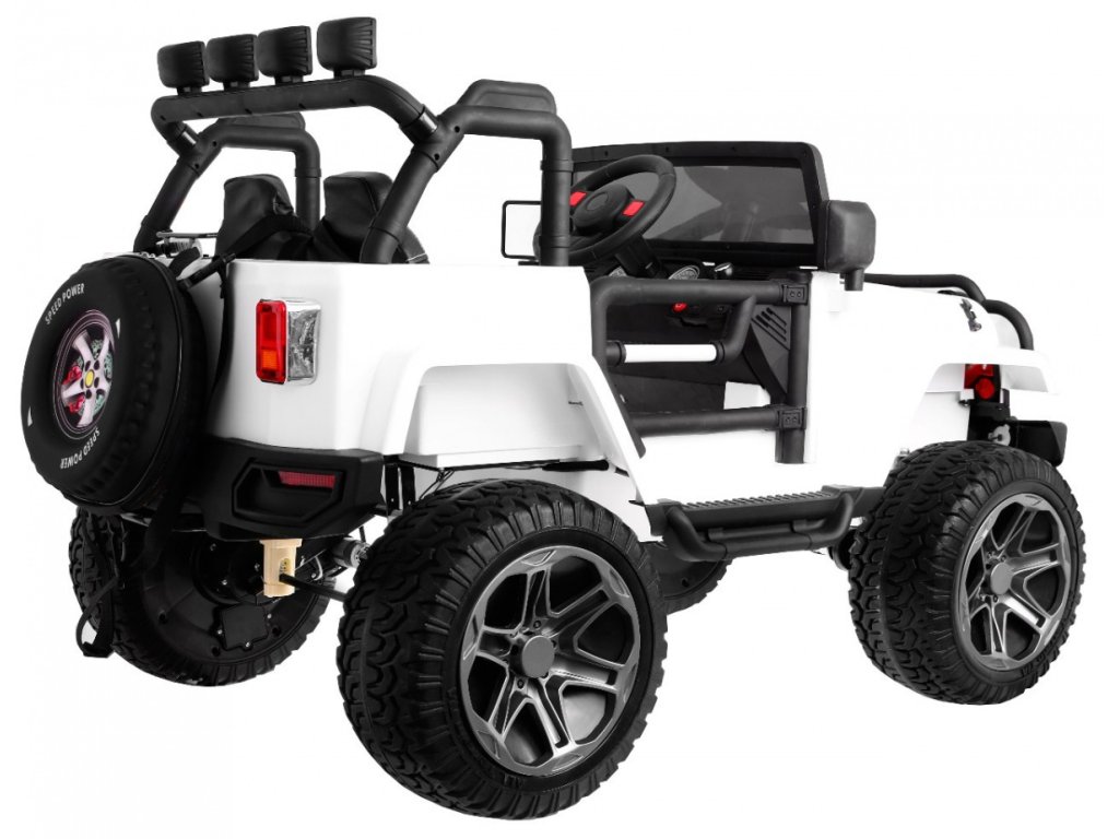 A gyerekeknek szánt elektromos Jeep autó a megfelelő módja annak, hogy bevezesse a gyerekeket a vezetés világába. Továbbá remek kiegészítője lehet a gyerekeknek családi sétákhoz vagy kerti időtöltéshez. A játékautó nagyon megbízható és biztonságos. A biztonságról az automatikus fék gondoskodik, amely a gázpedál elengedésekor aktiválódik. Biztonsági öv kell, és persze távirányító is a szülőknek.