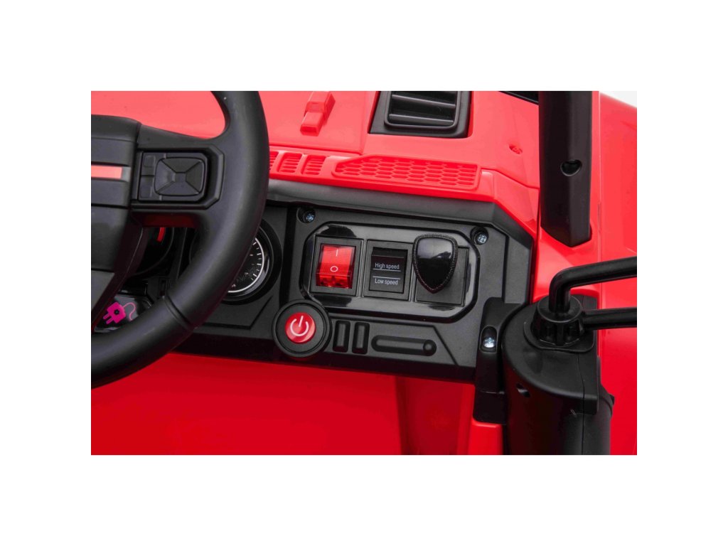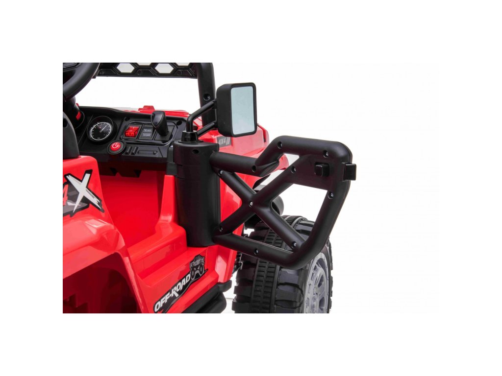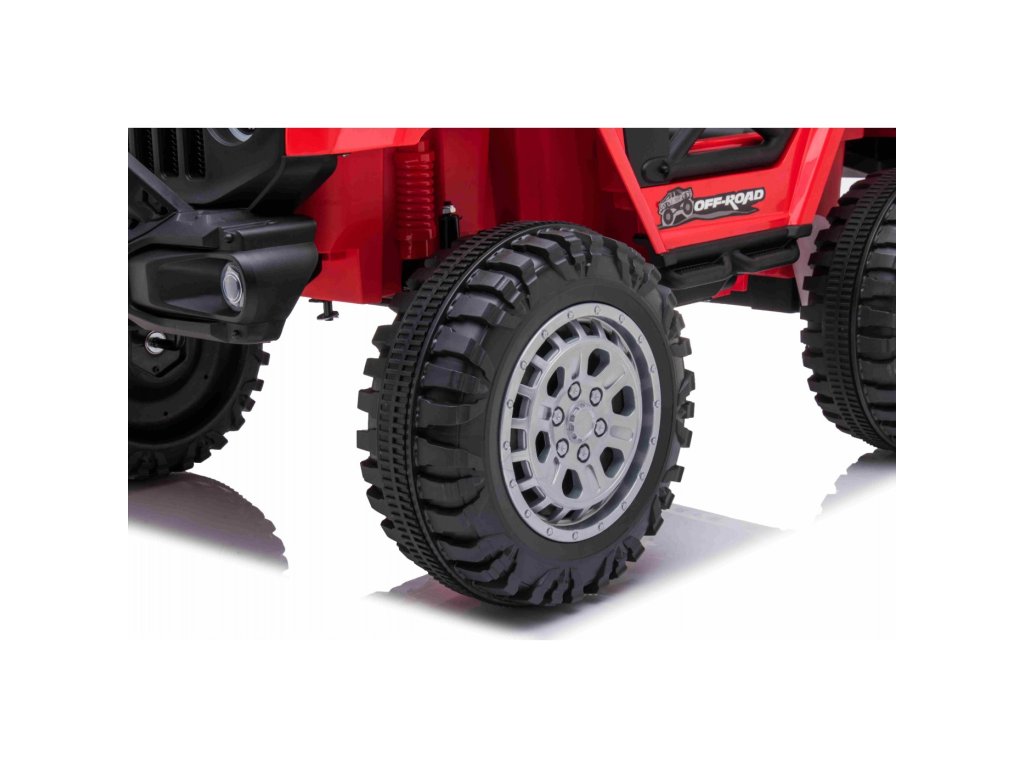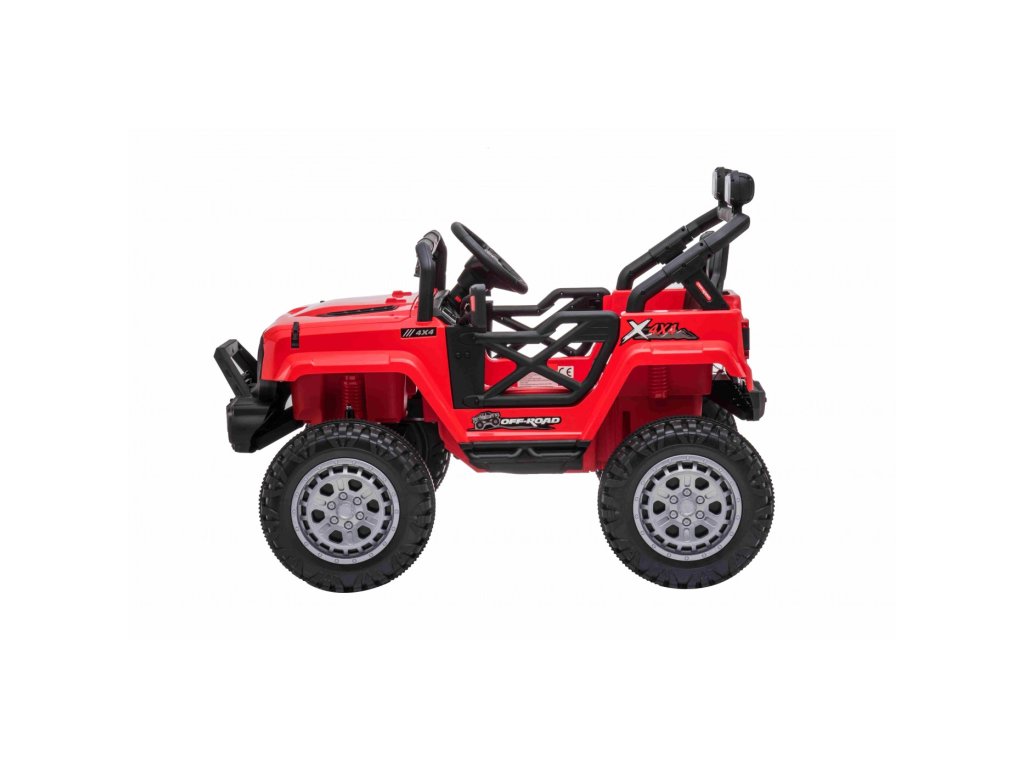 A Jeep Off-road Speed elektromos autó négy 35 W-os motorral és két 12 V-os 7 Ah-s akkumulátorral rendelkezik. A kocsi teherbírása 30 kg. Az EVA hab kerekek kényelmes utazást biztosítanak. A beépített dallamokkal, FM-rádióval, Bluetooth-, MP3- és USB- bemenettel ellátott zenepanel minden bizonnyal élvezetesebbé teszi az utazást a gyermek számára . Az ülés ökológiai bőrből készült.