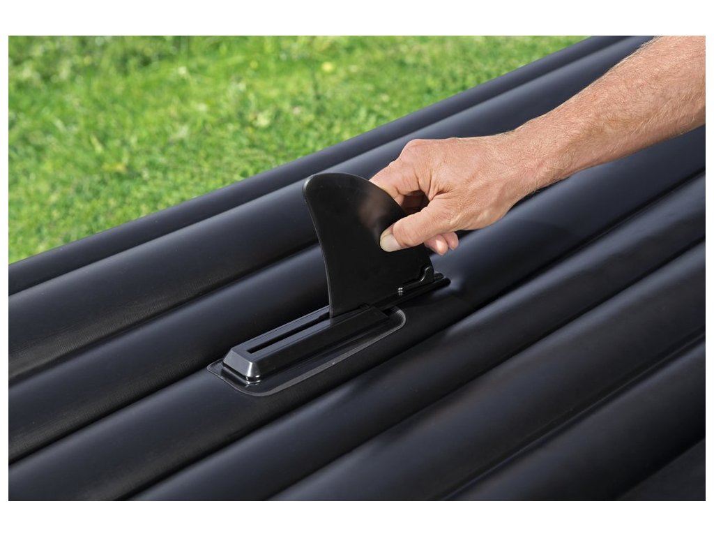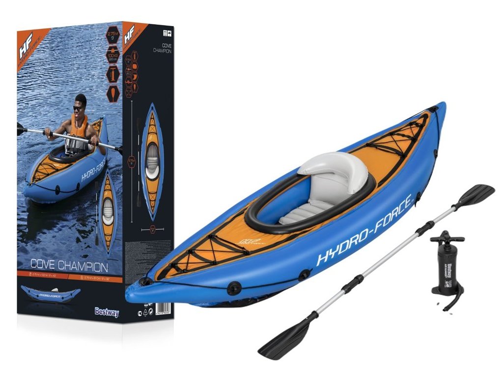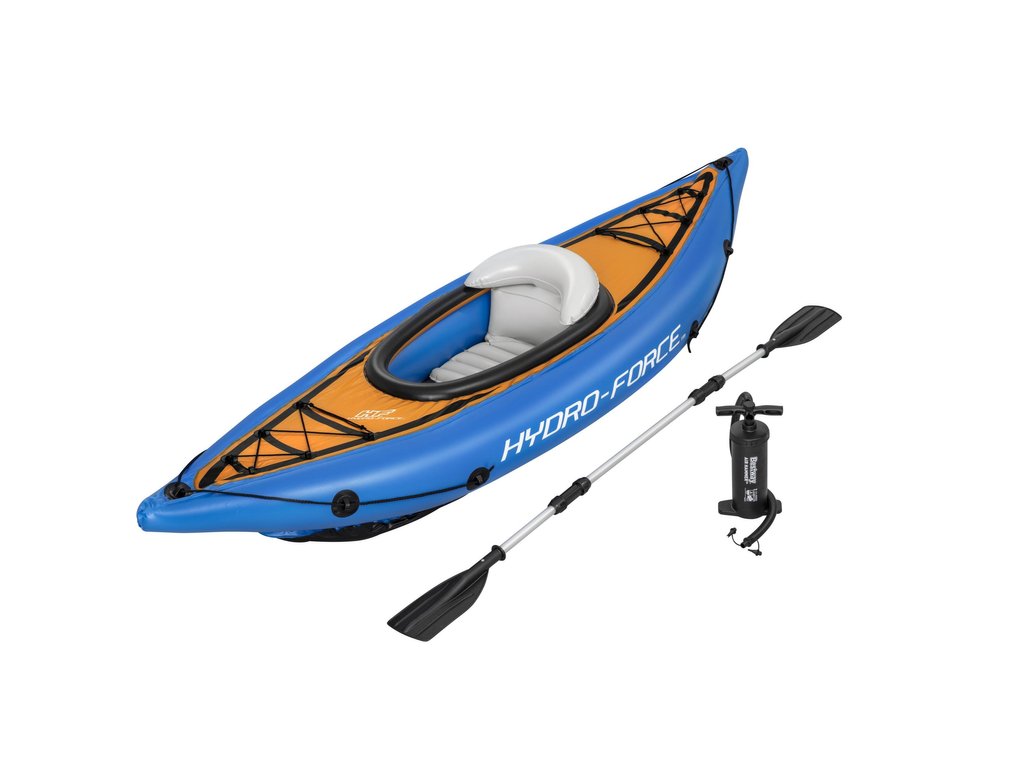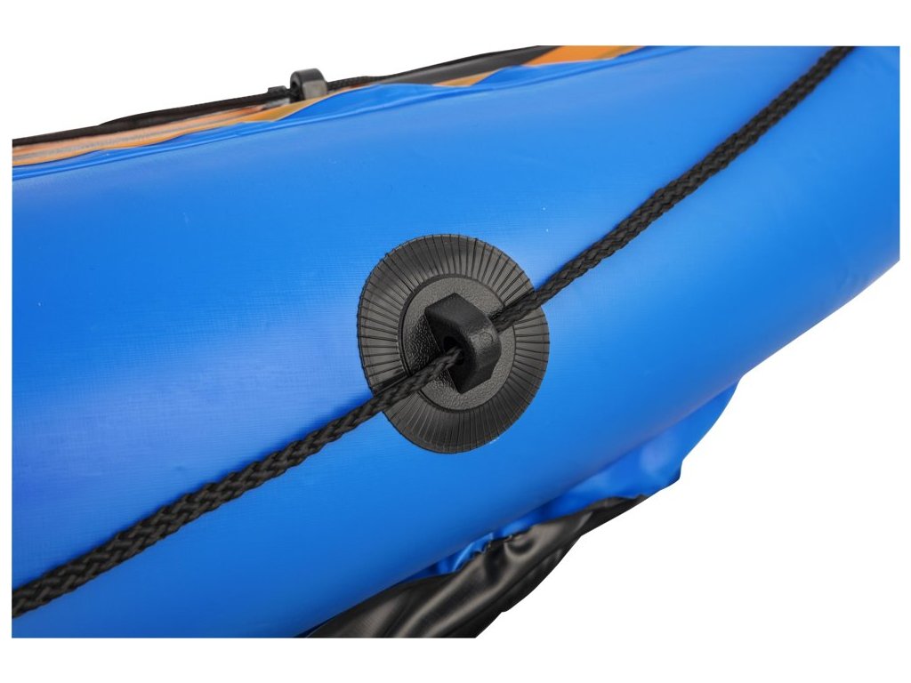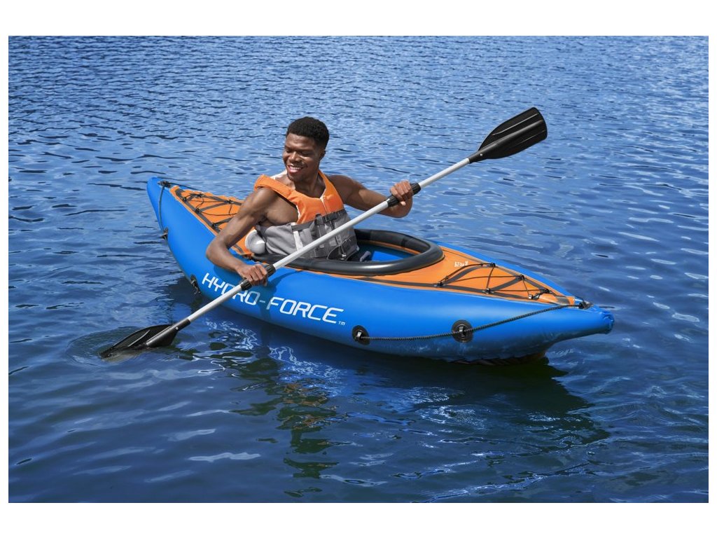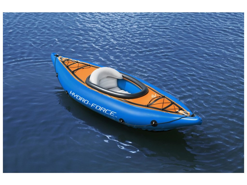 A felfújható kajak kiváló választás tavakon, öblökön, folyókon vagy csak a medencében való vitorlázáshoz. Sérülésálló vinilből készült. A kényelmes pilótafülke felfújható ülése puha háttámlával rendelkezik, amely kényelmesebbé teszi a hosszabb hajóutakat.