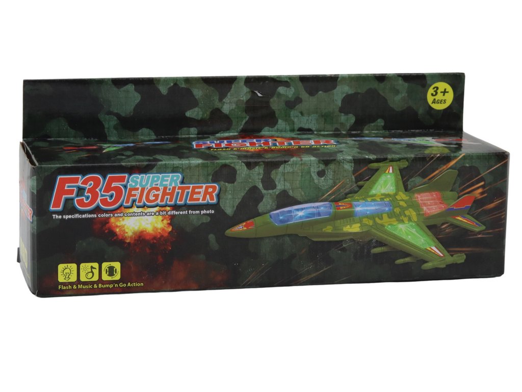 A vadászgép 3x 1,5 V-os AA elemmel működik, amelyeket a csomag nem tartalmaz.