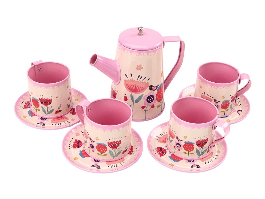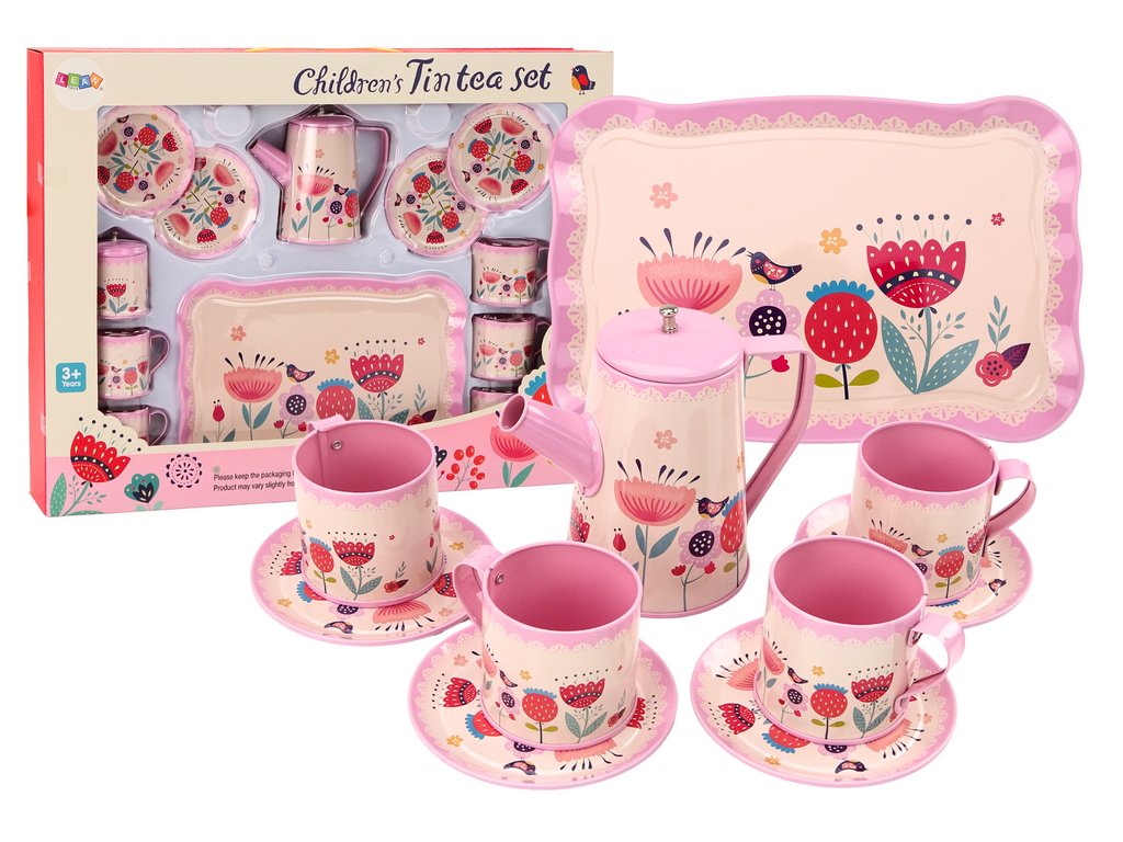 A tálca ideális italok és desszertek felszolgálására, a teáskanna pedig valósághű játékot tesz lehetővé tea vagy kávé töltésekor. A csészéket virágmintákkal is díszítették, ami hozzájárul a még valósághűbb és szórakoztatóbb játékhoz. A nagy desszerttányérok tökéletesek kedvenc édességei tálalására.