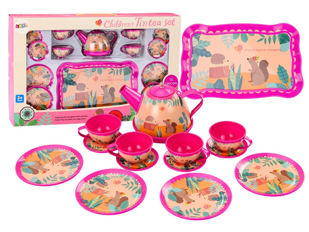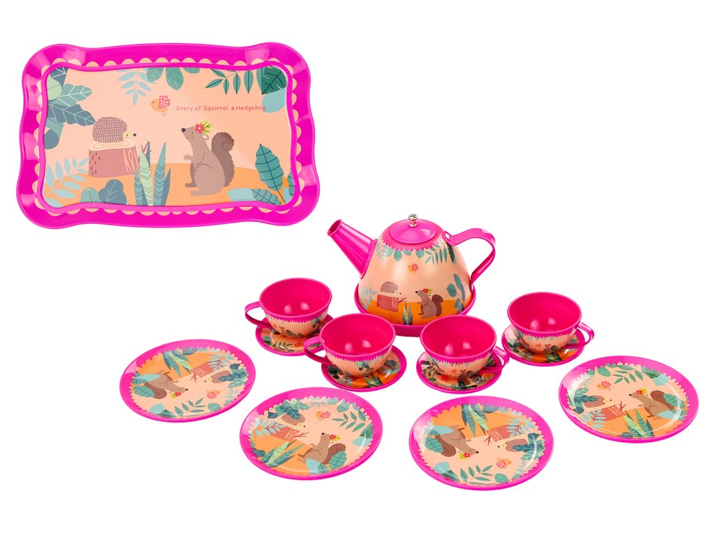 A tálca ideális italok és desszertek felszolgálására, a teáskanna pedig valósághű játékot tesz lehetővé a tea vagy kávé öntésében. Az erdei állatok motívumaival is díszített csészék és csészealjak még valósághűbbé és élvezetesebbé teszik a játékot. A nagy desszerttányérok tökéletesek kedvenc édességei tálalásához.