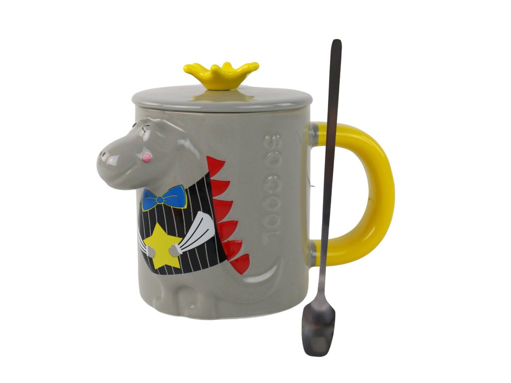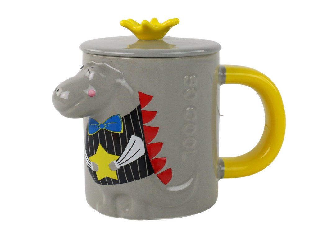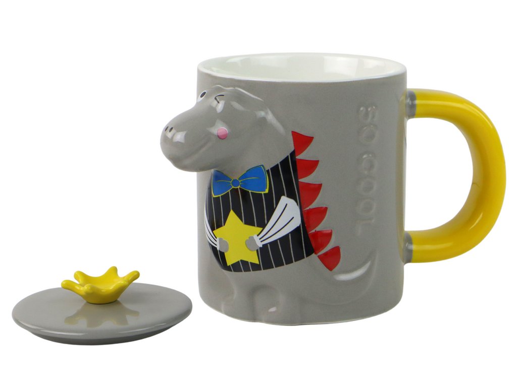 Kerámia bögre tetővel Szürke dinoszaurusz 400 ml