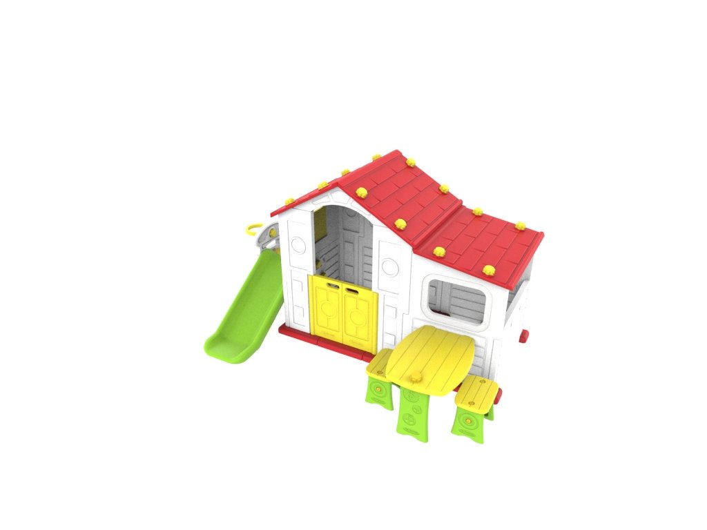 Kerti ház csúszdával és asztallal: