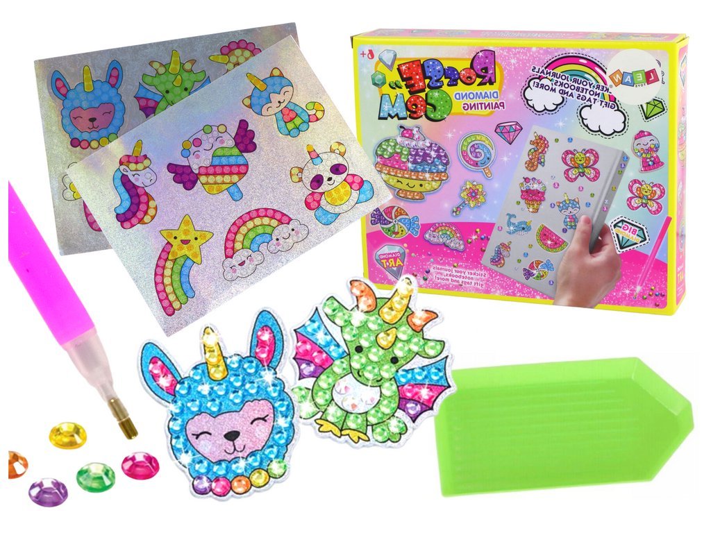 Kiegészítő készletünk egyedi matricák készítéséhez remek ötlet a legkisebbek számára. Ezzel az innovatív hímzéstechnikával gyönyörű képeket készíthetsz, ha apró gyémánt köveket ragasztasz a matricákra aranyos motívumokkal a készletben.