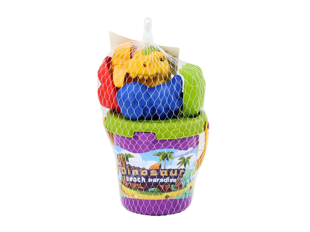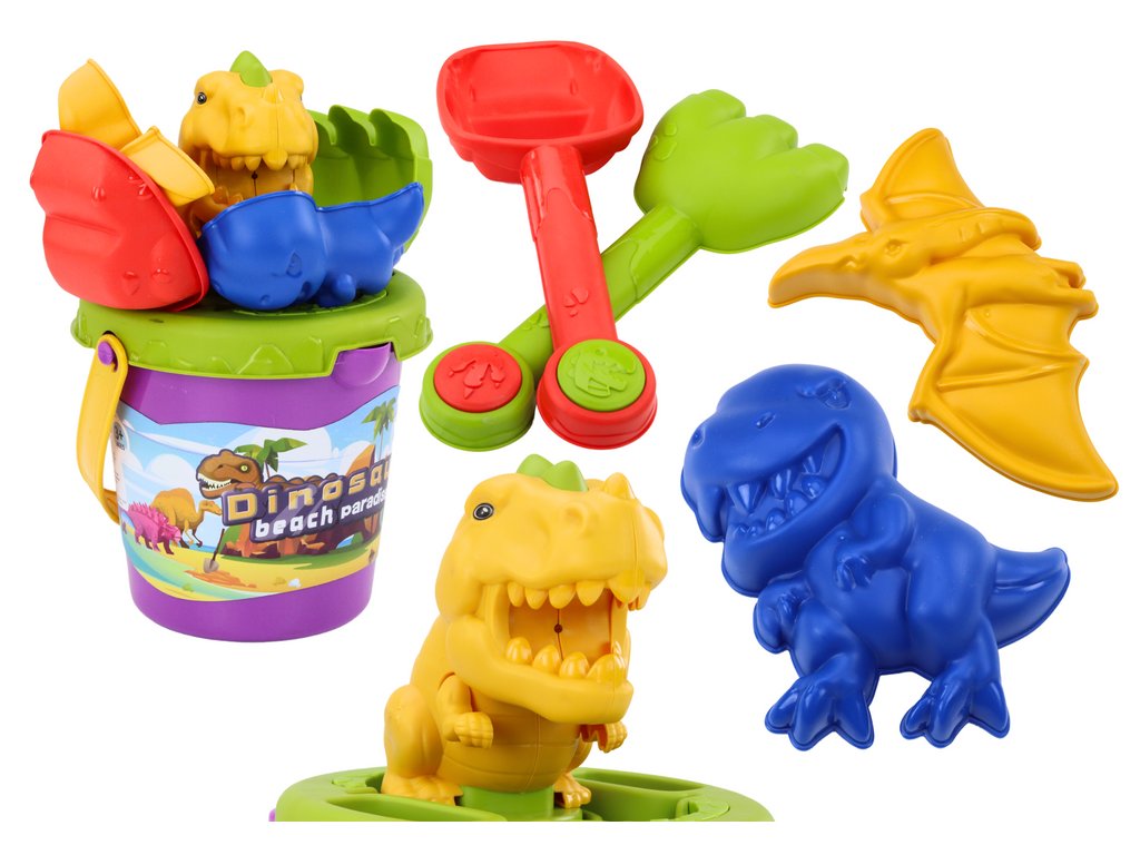 Készlet homokozós vödör lapát gereblye formák dinoszauruszok számára