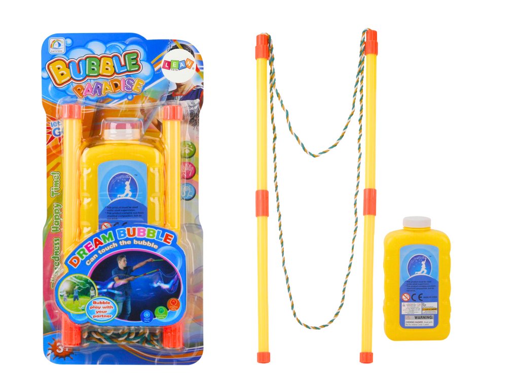 Az óriási szappanbuborék-készlet remek szórakozás gyerekeknek és felnőtteknek egyaránt, tökéletes a kertbe vagy a bulikba. Speciális zsinórt tartalmaz a nagy, fényes buborékok könnyű létrehozásához és 500 ml folyadékot. Az egyszerű használat végtelen örömet garantál.
