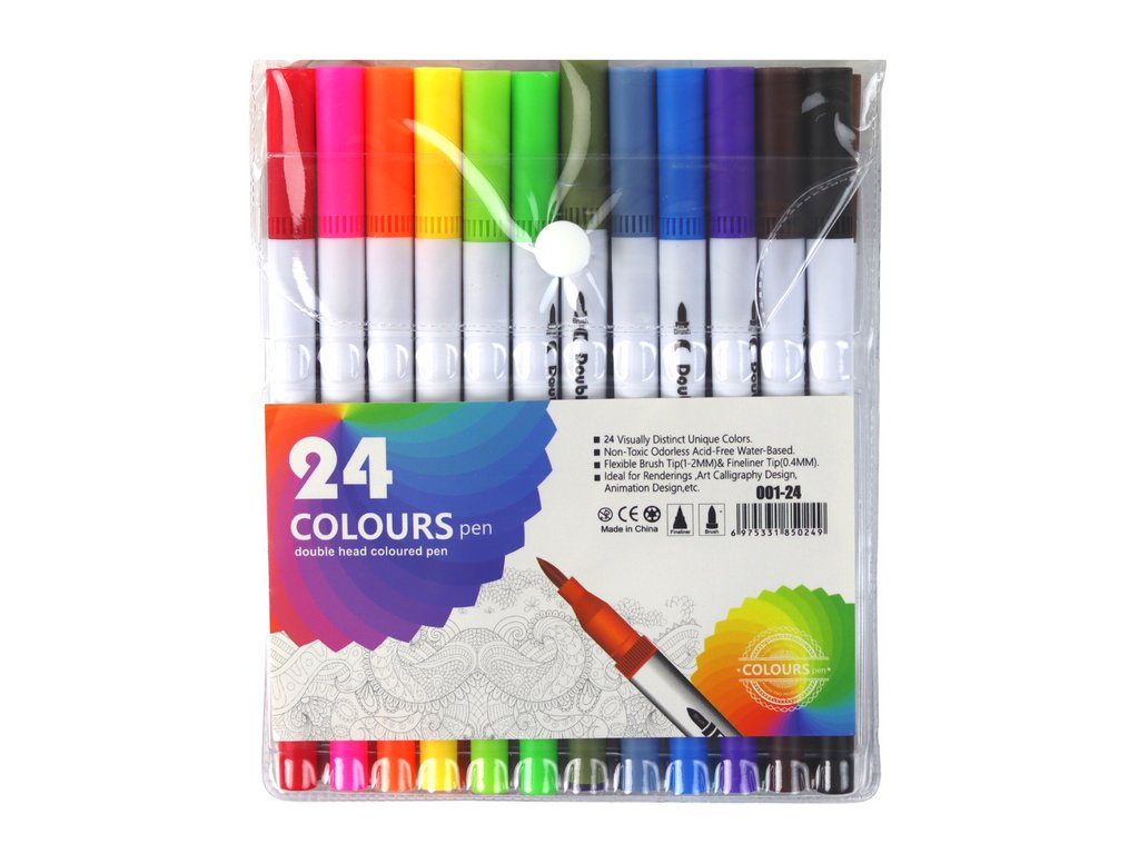 Kétoldalas jelölőkészlet 24 db-os, különböző színekben, rendezőben