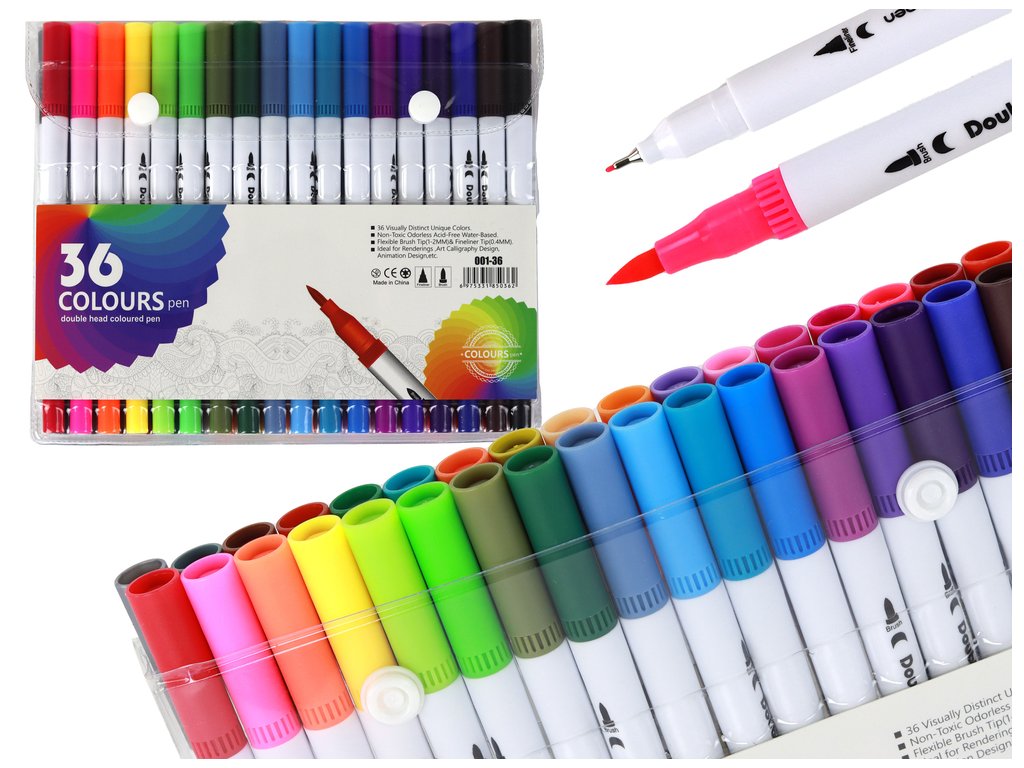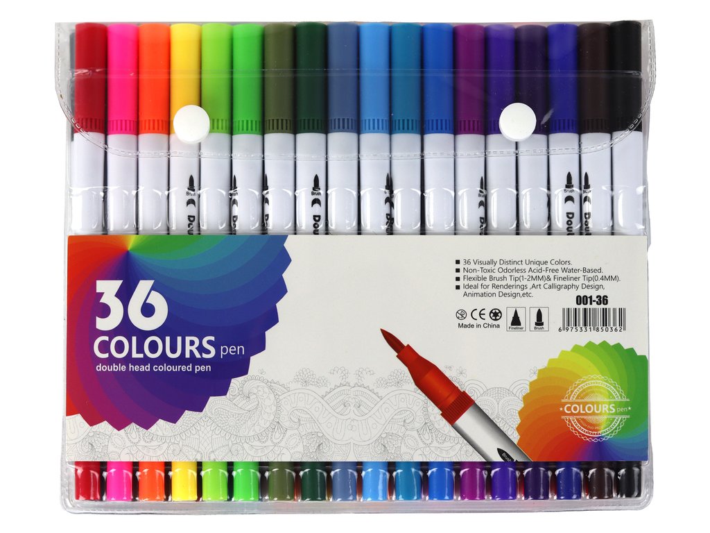Kétoldalas marker készlet 36 db-os, különböző színekben, rendezőben