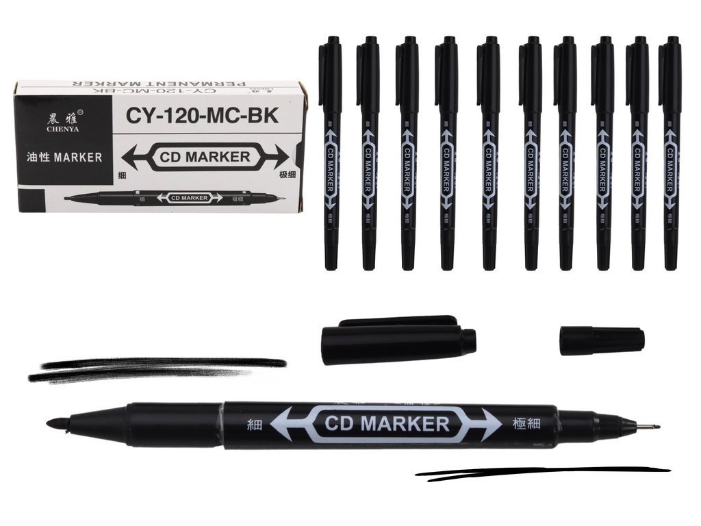 Kétoldalas vízálló marker készlet CD-n fekete 10 db