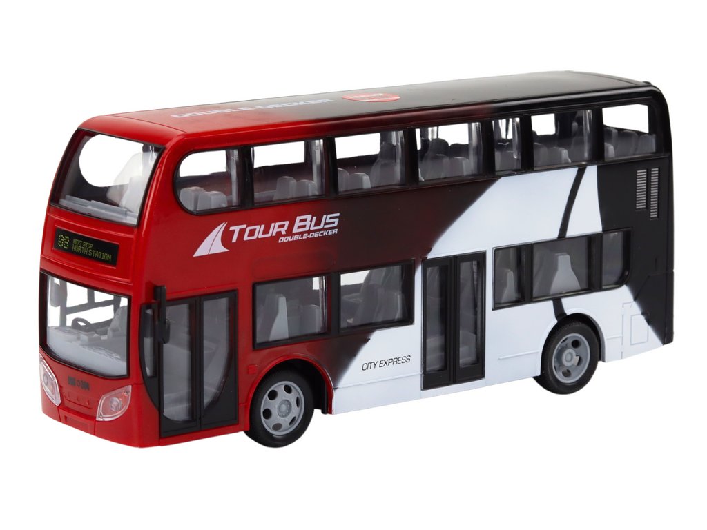Távirányító kétszintes RC busz! Ez a kétszintes, lenyűgöző autó piros, fehér és fekete színekben igazi csemege a távirányítós járművek szerelmeseinek, felejthetetlen szórakozást kínál gyerekeknek és felnőtteknek egyaránt.