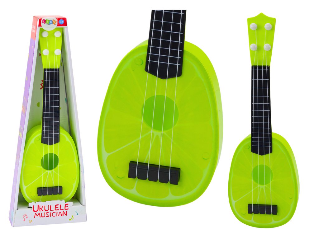 A gyermek ukulele nagyszerű választás fiatal zenészeknek, akik szeretnék felfedezni a zene világát. Ezt a könnyű hangszert négy nylon húrral úgy tervezték, hogy könnyen kezelhető és kényelmes legyen a kis kezek számára. Tartós és biztonságos műanyagból készült. A tetszetős lime formájú kialakítás játékos megjelenést kölcsönöz a hangszernek, amely izgatja és további zenei fejlődésre motiválja a gyerekeket.