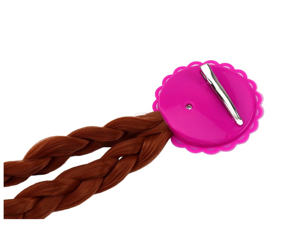 Először is van egy gyönyörű klipünk két hosszú fonattal, amely kecsességet és eleganciát kölcsönöz minden frizurának. Kék csillámmal díszített rózsaszín kesztyű, amely kivételes fényt ad, és gondoskodik arról, hogy kis hercegnőd minden bálban ragyogjon.