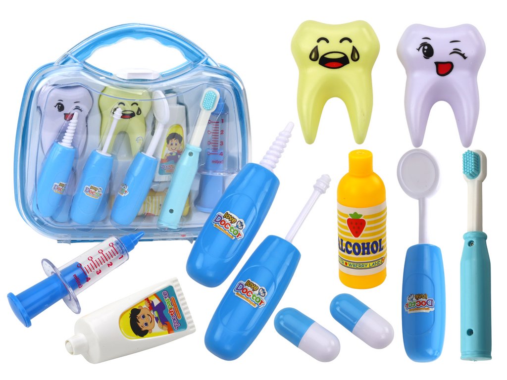 A tokban lévő kis fogorvosi szett egy teljes értékű orvosi játék, melynek minden eleme a fogorvosok által használt valódi eszközöket tükrözi. Könnyű és ergonomikus formájuknak köszönhetően, amelyeket kifejezetten a kis kezekre terveztek, a gyerekek könnyen kezelhetik őket. A készlet praktikus tokban való elhelyezése mobilitást biztosít és megkönnyíti a tárolást.