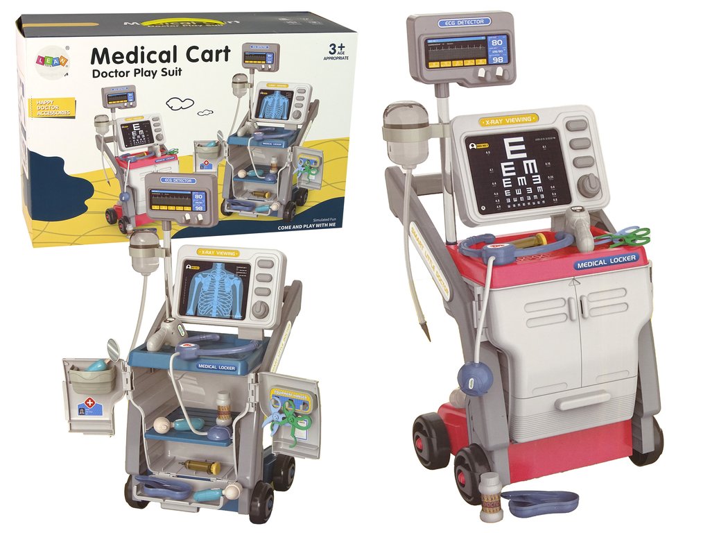 Egy rózsaszín szettet mutatunk be kis orvosoknak , ami minden orvoskedvelőt elvarázsol. A készlet tartalmaz egy kerekes "kocsit", valamint a szükséges orvosi eszközök széles választékát, beleértve az injekciót, az ollót és az elemmel működő sztetoszkópot.