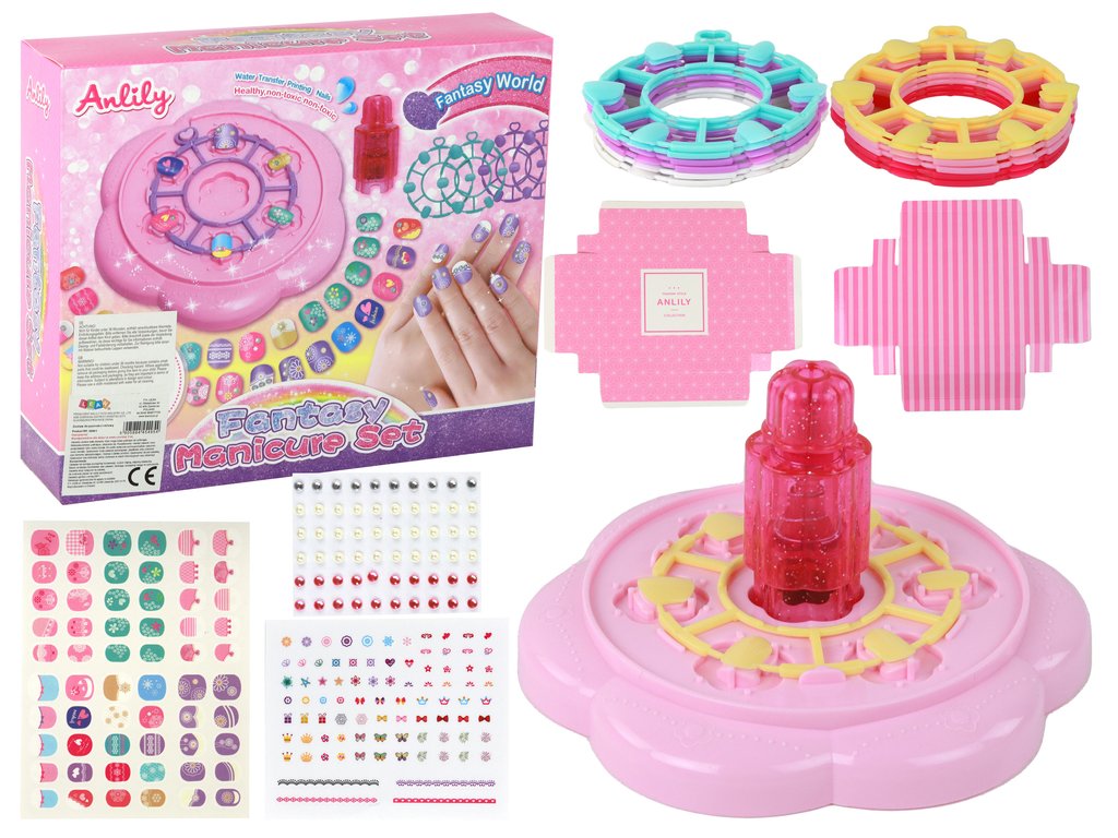 A készlet mindent tartalmaz, amire a kis művészeknek szüksége van az egyedi körömminták elkészítéséhez. A kényelmes formázószőnyeg ideális munkafelületet biztosít, a különféle matricák, fényes flitterek és hosszabbítások lehetővé teszik a kreatív kifejezést a kis körmökön.