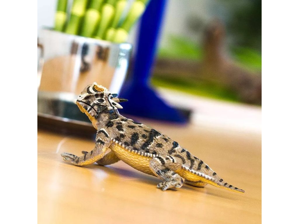 A figura a tüskés ördögöt ábrázolja – egy tüskés bőrű gyíkot, feltűnő tüskékkel a fején, ami a száraz, nyílt tájakra jellemző.
