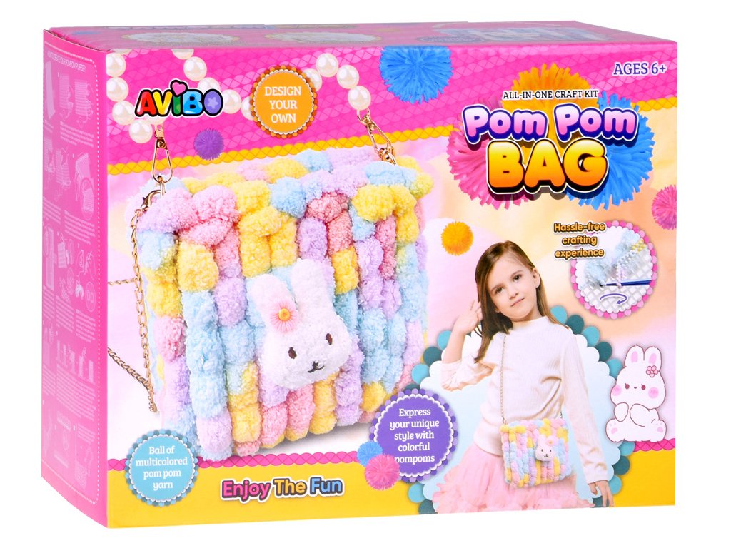Készítsd el saját, egyedi táskádat a Pom Pom Bag készlettel! Ez egy fantasztikus kézműves szórakozás 6 éves kortól, amely fejleszti a kreativitást, a művészi képességeket és a képzelőerőt.