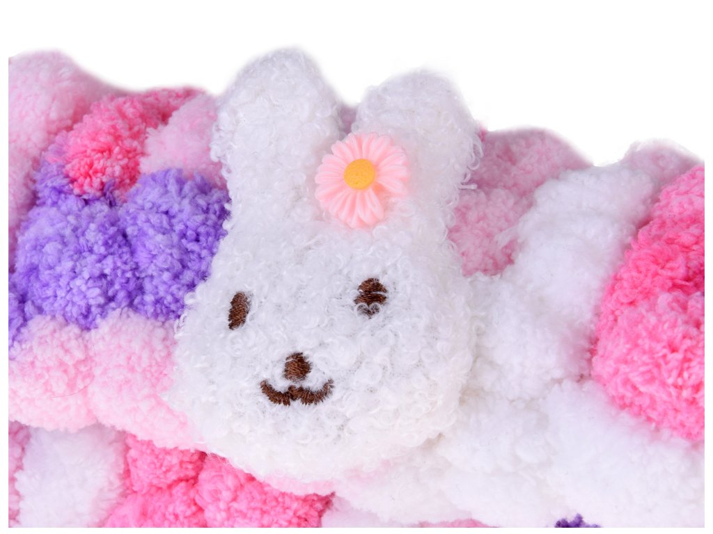- Puha, színes fonalakat tartalmaz színes pomponokkal, amelyekből aranyos táska készül.