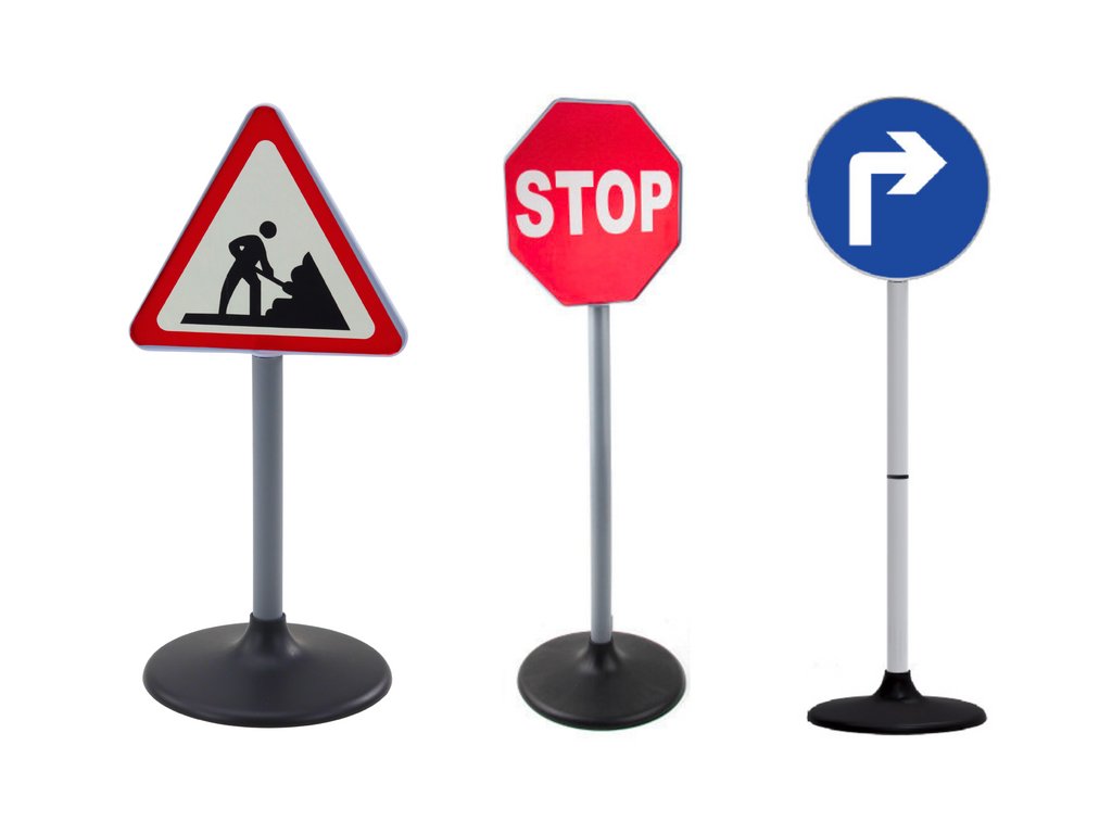 Oktatási útjelző táblakészlet - ideális a közlekedési szabályok vonzó tanítására. Ez a teljes készlet segít a gyerekeknek elsajátítani a biztonságos közúti mozgás szabályait, és egyben sok szórakozást nyújt számukra. Három nagy közlekedési tábla 3 éves kortól gyermekek számára. A táblák strapabíró anyagokból készülnek, odafigyelve a részletekre.