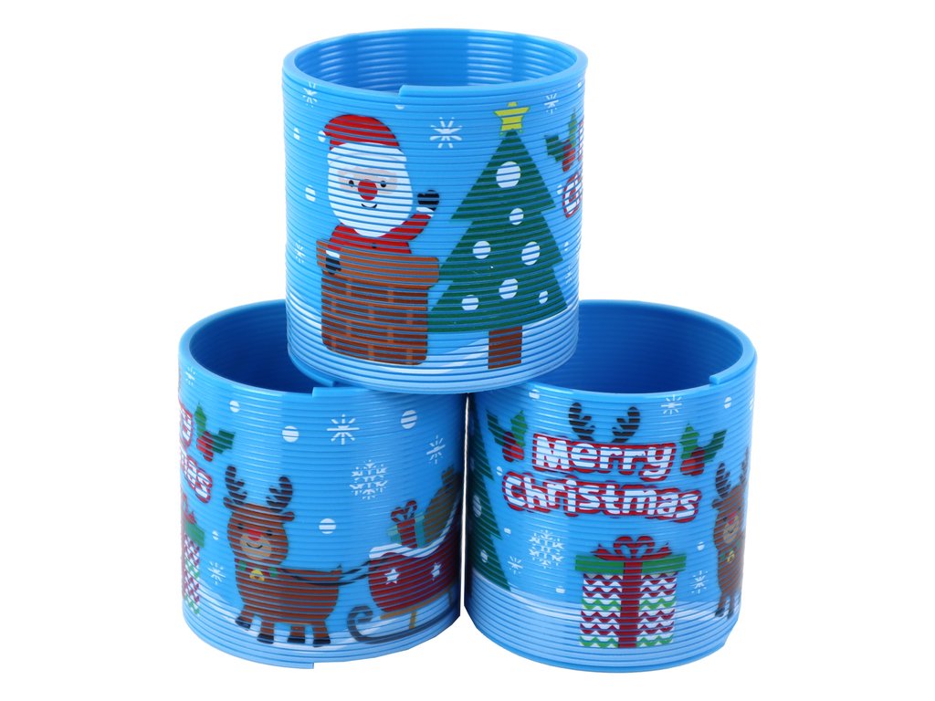 Egy karácsonyi motívumú kék rugót mutatunk be kompakt, 6 cm-es méretben.