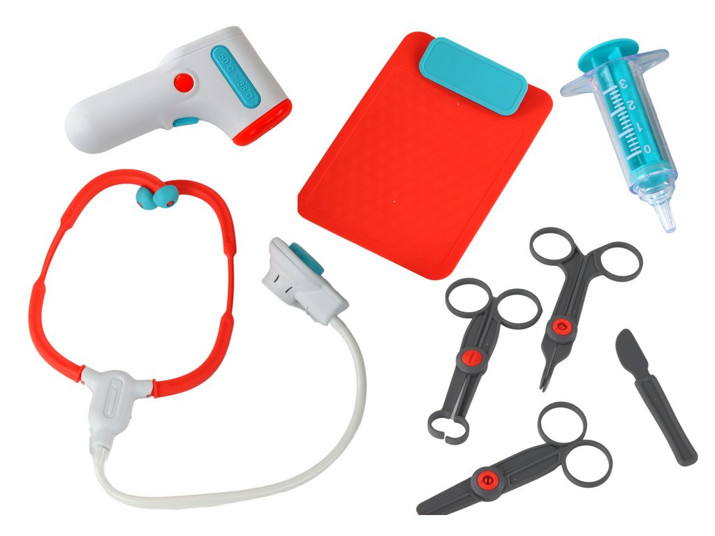 Az orvosi kiegészítők, a hőmérőtől a sztetoszkópig, az orvosi műszerek hiteles utánzatai, valamint a hang- és fényeffektusok valósághűbbé teszik a gyerekeket, és teljesen lekötik. Ez a komplett készlet nem csak szórakozást nyújt, hanem elősegíti az egészségügy és az egészségnevelés iránti érdeklődés felkeltését is.