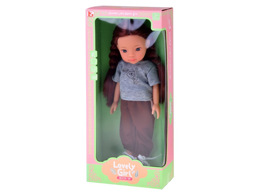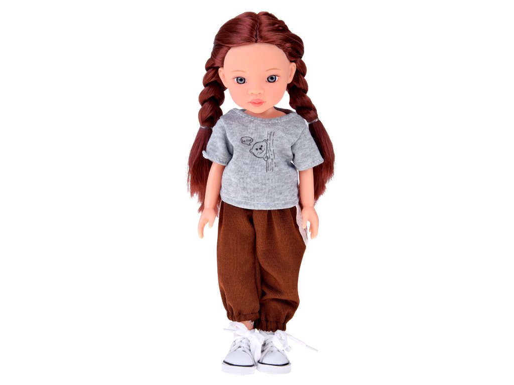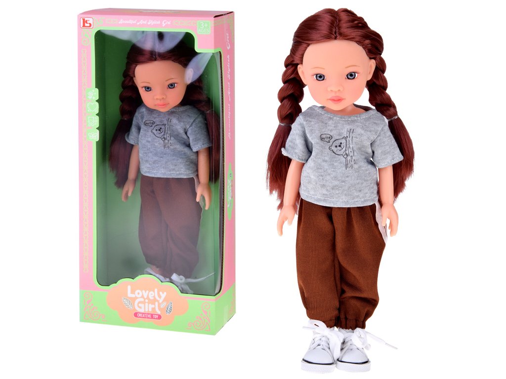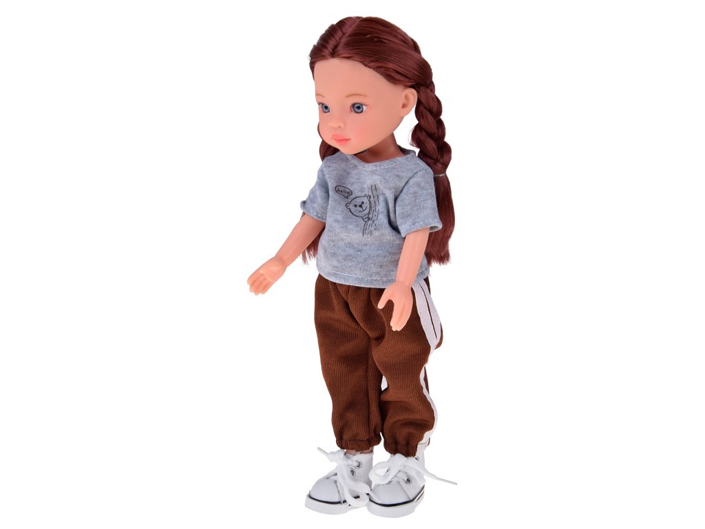 Lovely Girl Baba hosszú barna hajjal, sportruházatban, 33 cm