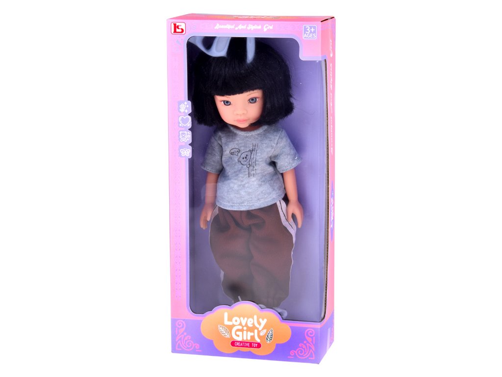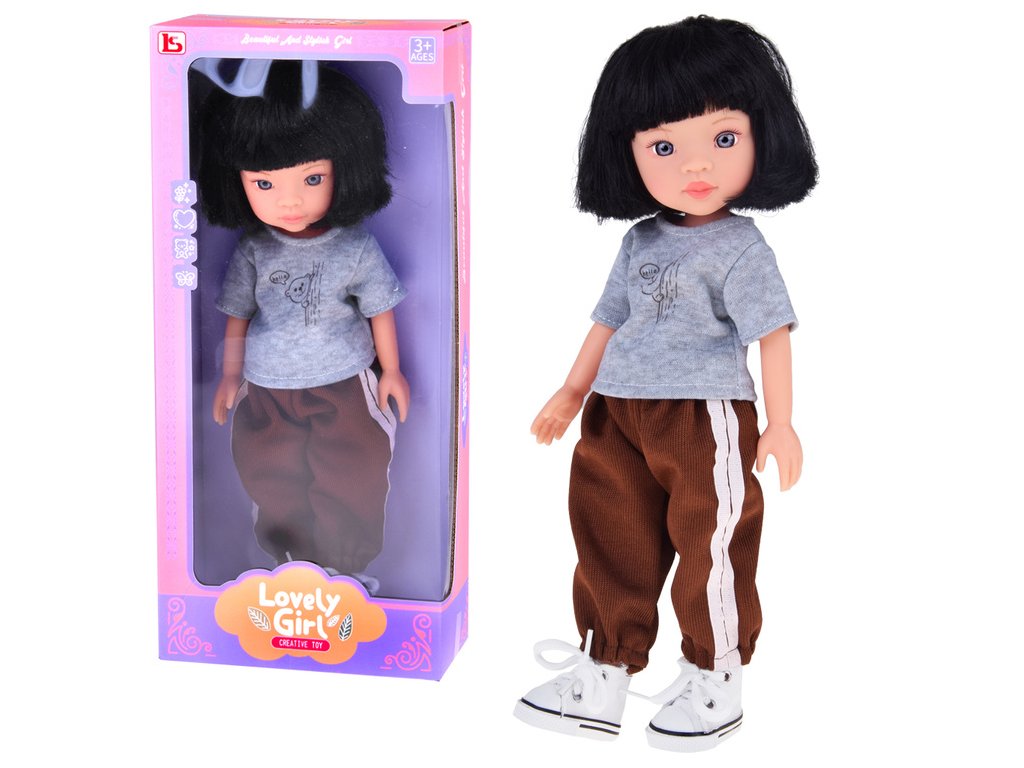 Lovely Girl baba rövid, fekete hajjal, sportruházatban, 33 cm