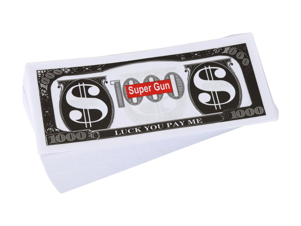 A számlák laza papírdarabkák, hogy könnyen elhelyezhetőek legyenek a fegyverben lévő speciális tárolóban. A fegyvernek elsütő mechanizmusa van.