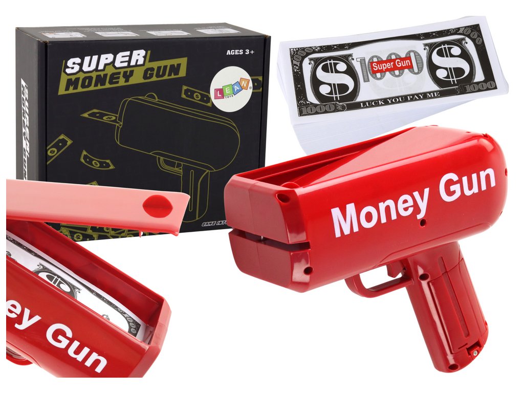 Lövöldözős pisztoly pénzért piros Money Gun bankjegyek
