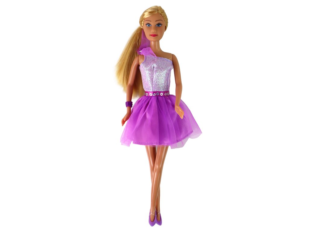 Lucy baba gyönyörű lila ruhát visel. A ruha tetejét fényes csillámok díszítik, amelyek eleganciát adnak. A ruha alsó része kiszélesedett, amitől a baba igazi kis hercegnőnek tűnik, lábán pedig lila pumpák teszik teljessé az egész stílust.