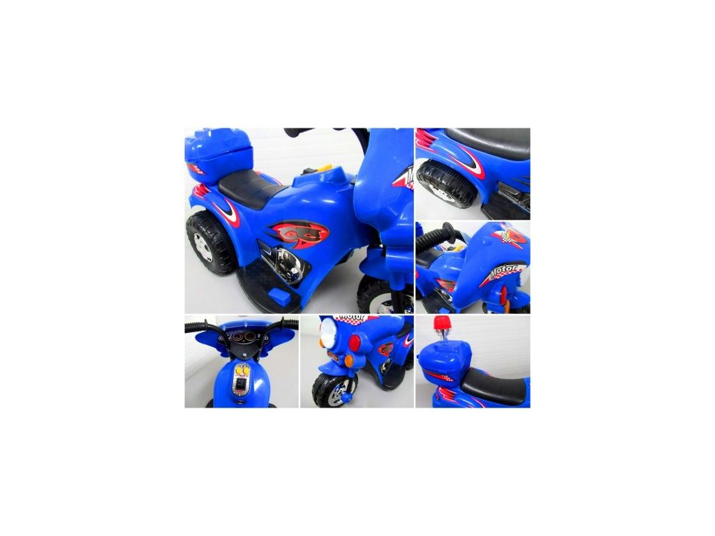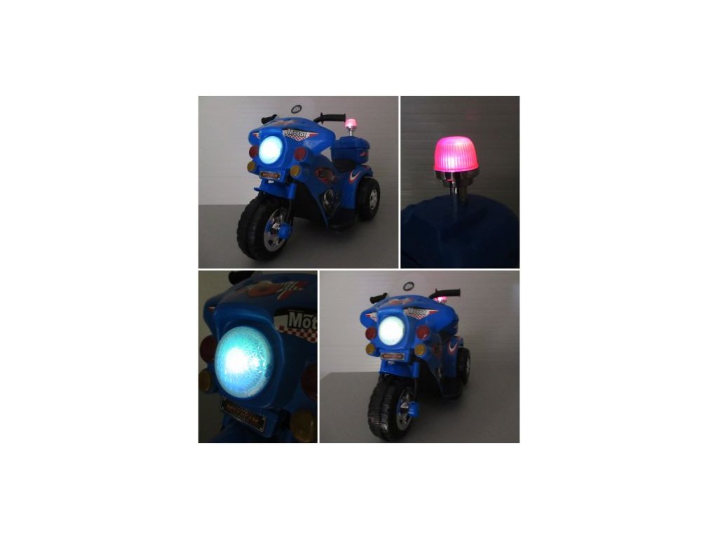 A gyerek elektromos motorkerékpár felszerelése egy elülső lámpát és egy zenepanelt tartalmaz előre felvett dallamokkal. A motorkerékpár nagyon könnyen kezelhető - csak nyomja meg a gázpedált, és a jármű lassan elindul.