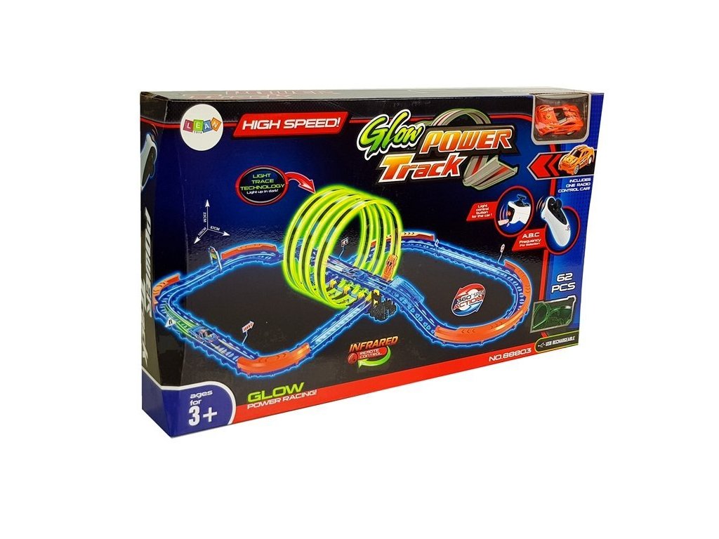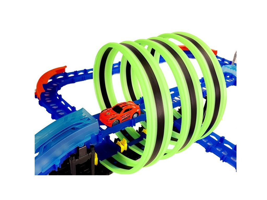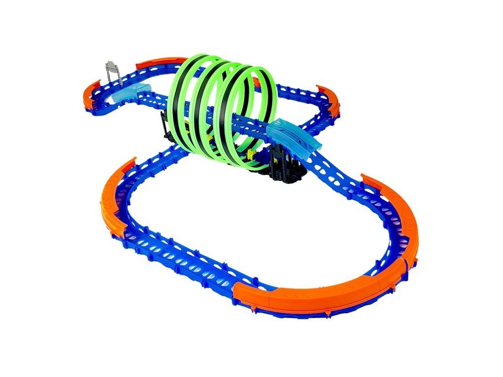 Magic Tracks nagy autópálya 360 fokos fordulatokkal, amelyek világítanak a sötétben. A készlet tartalmaz egy játék távirányítós autót narancssárga színben. Gyors és dinamikus. A teljes készlet 62 részből áll.