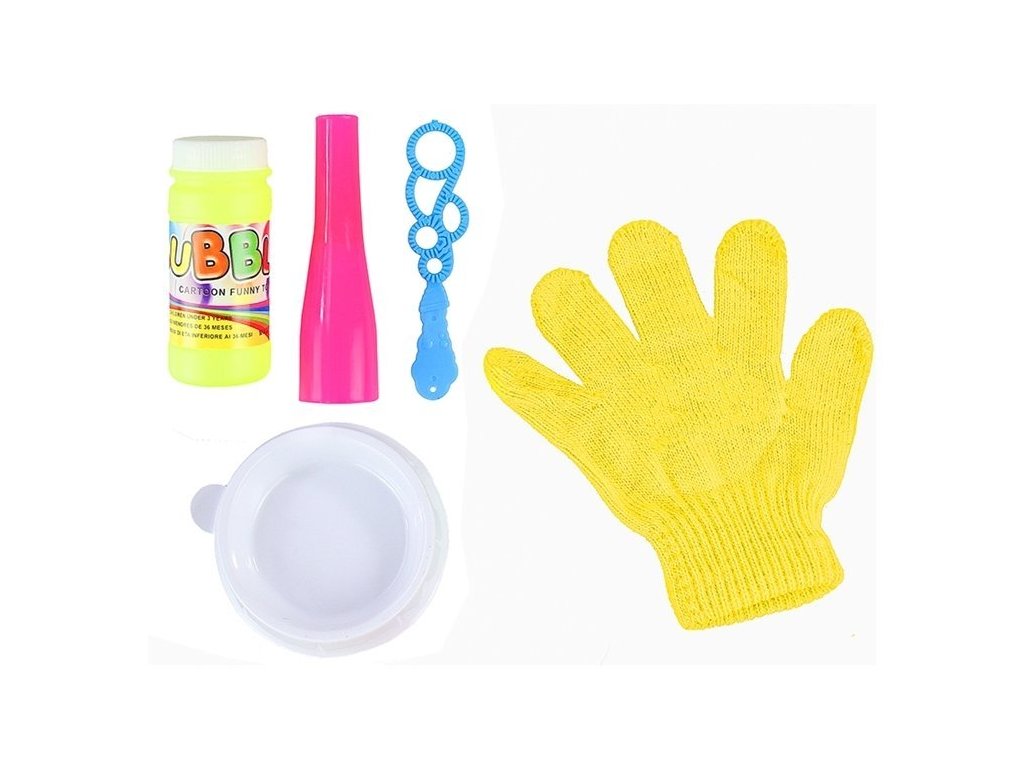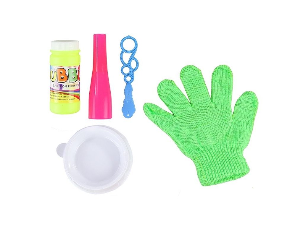 Csak vegye fel a kesztyűt, öntse a folyadékot a mellékelt edénybe, és mártsa bele a csövet, majd szappanbuborékokat hoz létre. Egy speciális kesztyű lehetővé teszi a buborékok taszítását és akár az ujja hegyére való helyezését is. A képzettebb egyének kipróbálhatják magukat a buborék-zsonglőrben – csak hozzon létre néhány buborékot, és már kezdheti is!