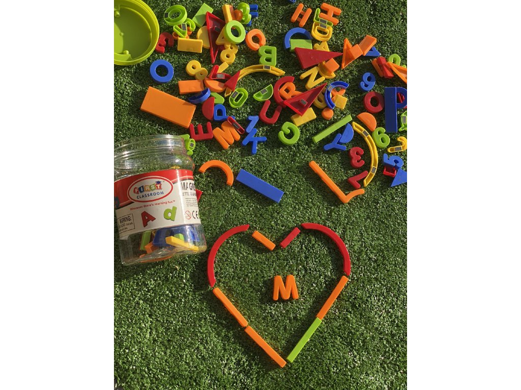 Betűk, jelek és számok, amelyek a mágnestáblára tapadnak. A gyerekek megtanulják az ábécét és az alapvető számokat. A színfeldolgozásnak köszönhetően a tanítás hatékonyabb és mindenekelőtt egy kicsit szórakoztatóbb lesz a gyerekek számára.