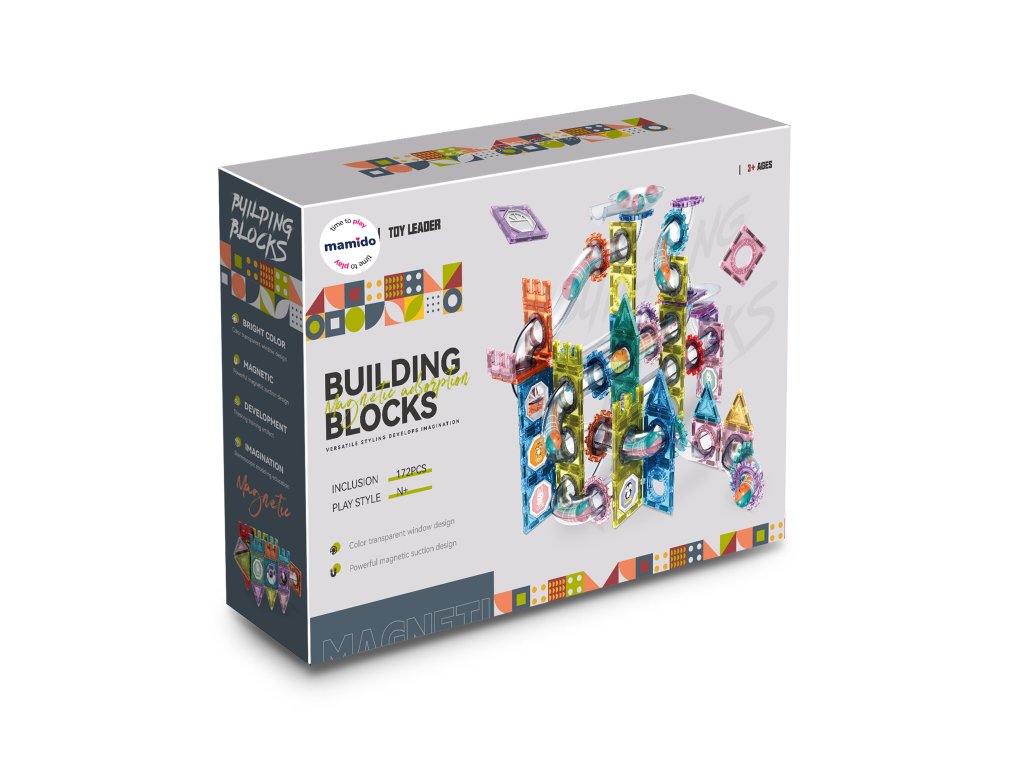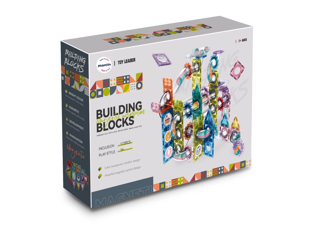Csodálatos mágneses építőkocka készlet, amely ötvözi a kreatív építést a dinamikus golyópályával! A készlet 172 darabot tartalmaz különböző formákban, átlátszó csöveket, íveket, kerekeket és mágneses paneleket, amelyek segítségével a gyerekek saját színes építményeket hozhatnak létre, és figyelhetik, ahogy a golyók végigfutnak az általuk megalkotott eredeti pályán.