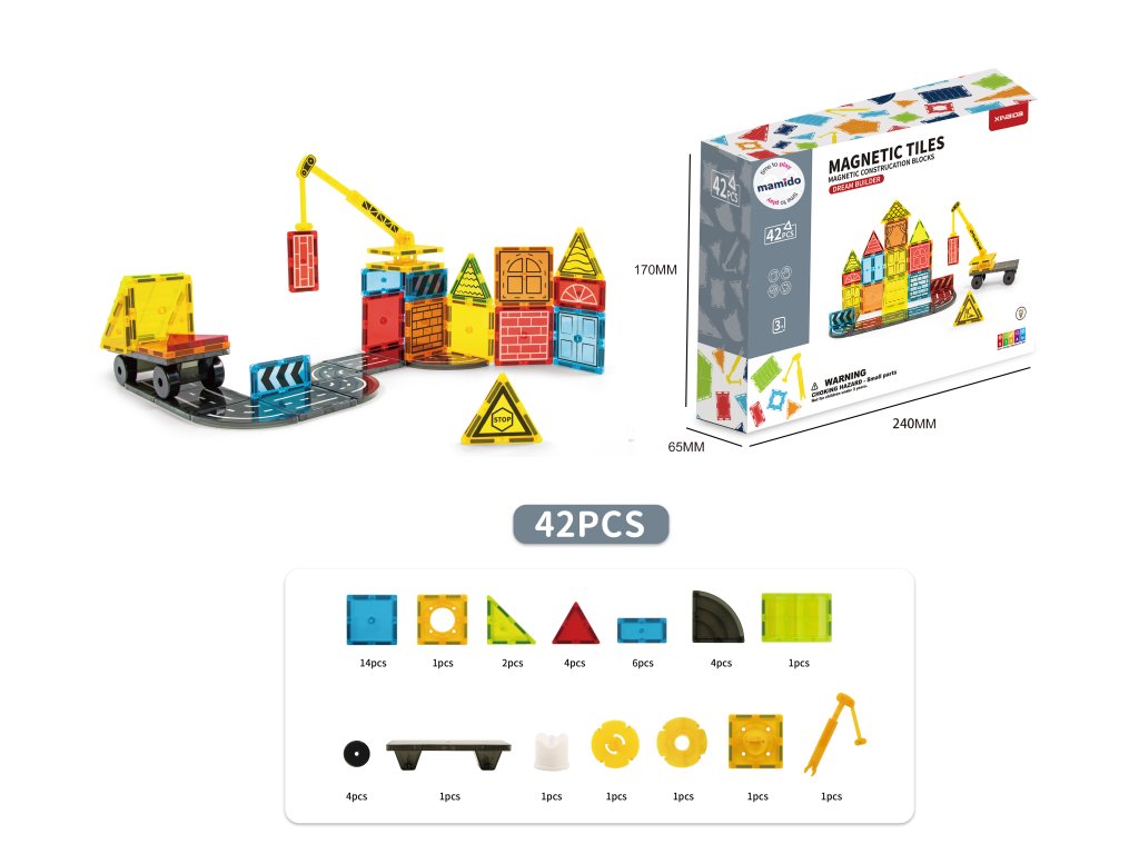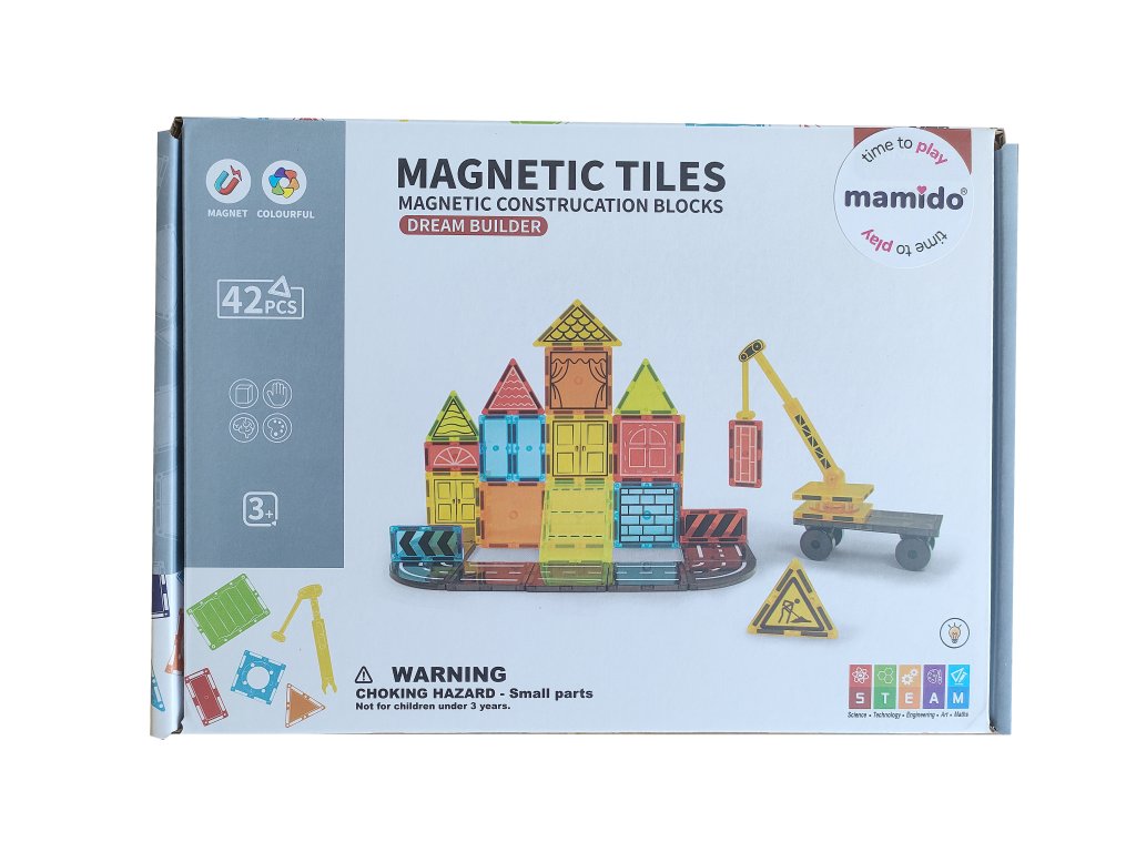 Indulj el a közlekedés és az építőipar világába egy eredeti mágneses építőkészlettel, amely 42 darab elemet tartalmaz. A gyerekek felépíthetnek egy egész várost utakkal, táblákkal, épületekkel és járművekkel. A színes mágneses darabok könnyen összekapcsolódnak, és végtelen kombinációkat tesznek lehetővé az egyszerű építményektől a kidolgozott közlekedési jelenetekig. A készlet tartalmazza az autókat kerekekkel, közlekedési táblákat, egy darut és egyéb kiegészítőket is, amelyek valósághűvé teszik a játékot.