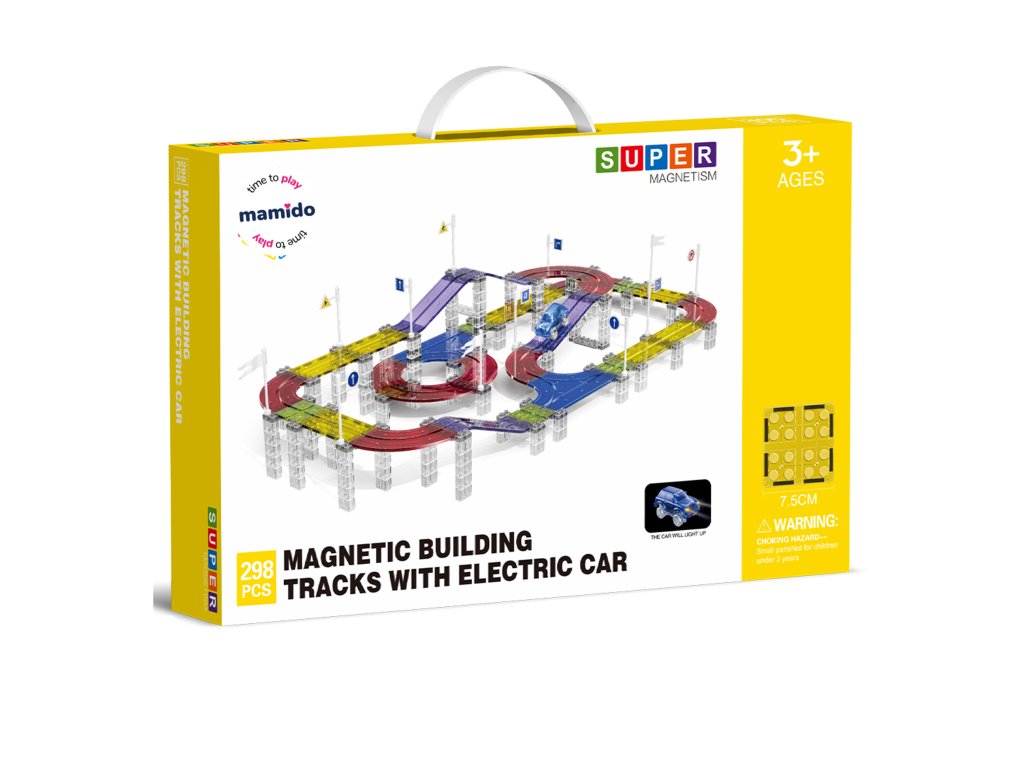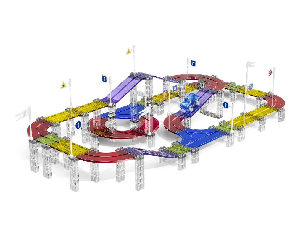 A készlet 298 mágneses elemet tartalmaz, speciális pályaelemeket is beleértve. Az erős mágneseknek köszönhetően a panelek könnyen összeilleszthetők, így a gyerekek kísérletezhetnek a pálya formájával és magasságával. Az elektromos kisautó önállóan végigjárja az egész útvonalat, ami nagyszerű mozgásélményt nyújt és fejleszti a technikai gondolkodást.