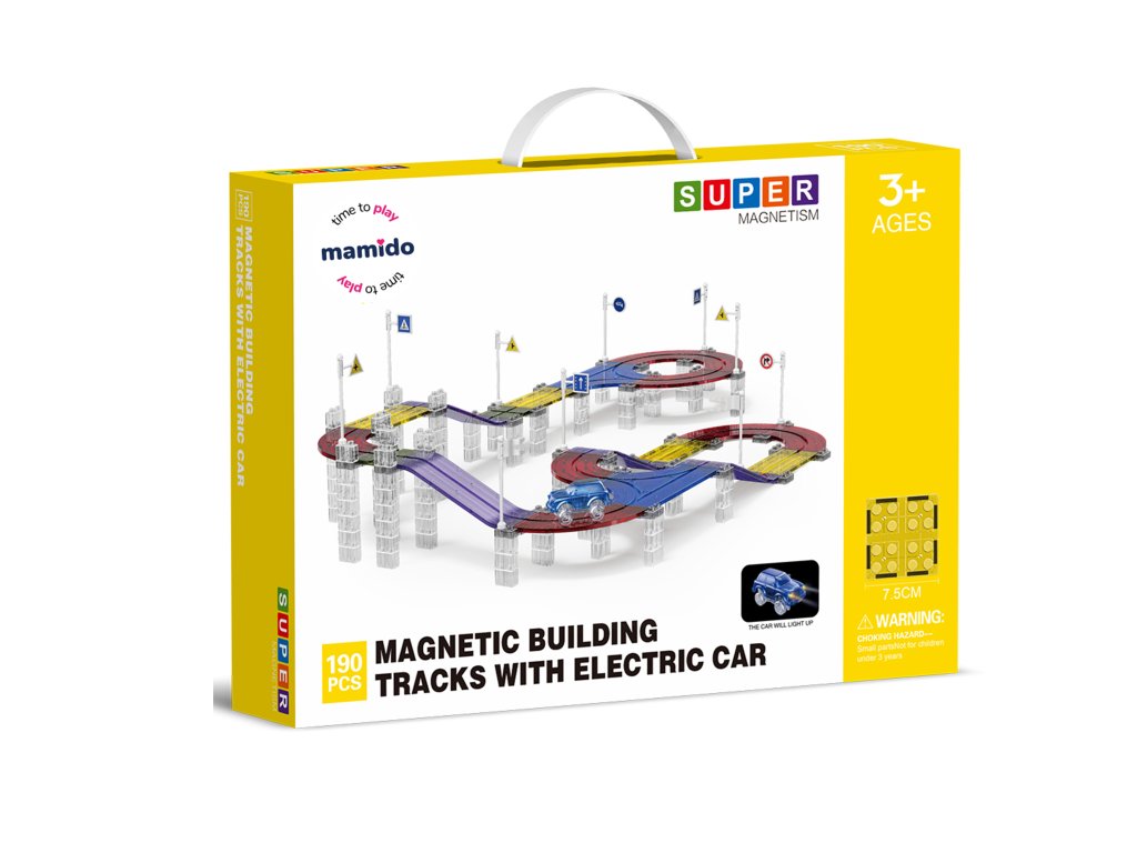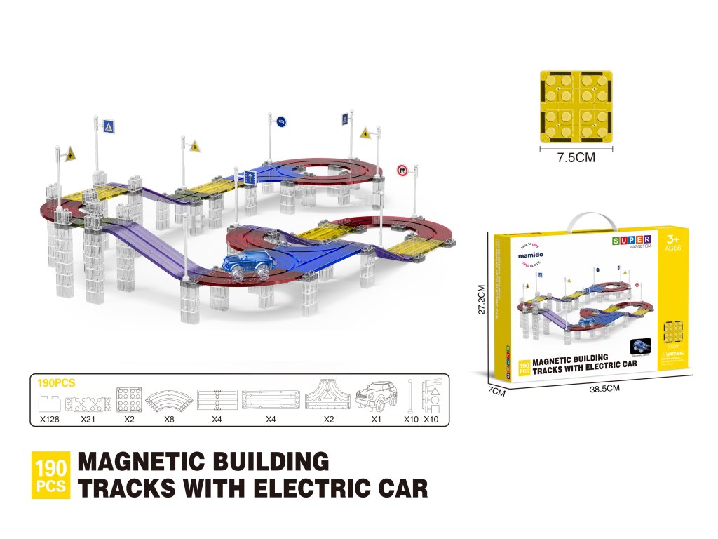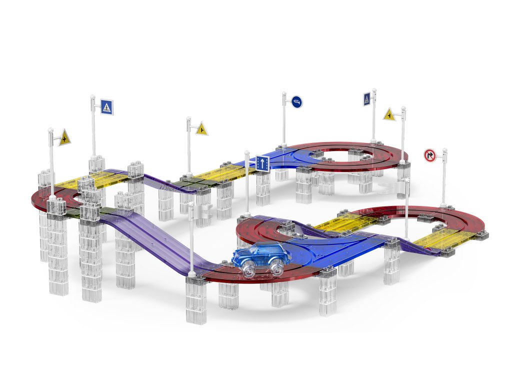 A készlet 190 mágneses elemet tartalmaz, beleértve speciális pályaelemeket is. Az erős mágneseknek köszönhetően a panelek könnyen összeilleszthetők, így a gyerekek kísérletezhetnek a pálya formájával és magasságával. Az elektromos kisautó önállóan végigjárja az egész útvonalat, ami nagyszerű mozgásélményt nyújt és fejleszti a technikai gondolkodást.
