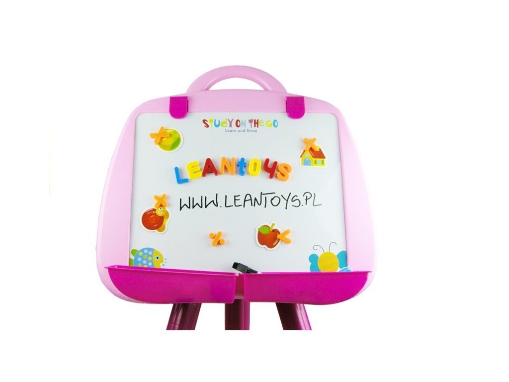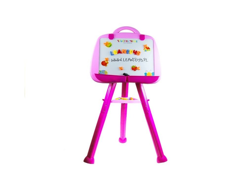 Egy nagy, oktató tábla minden művészetrajongó örömére szolgál. A tábla felülete lehetővé teszi a jelölővel való írást, valamint képek, számok és betűk rögzítését a mágnesre. Ezen kívül a táblán kapcsok találhatók a papír rögzítéséhez, így festőállványként is használható.