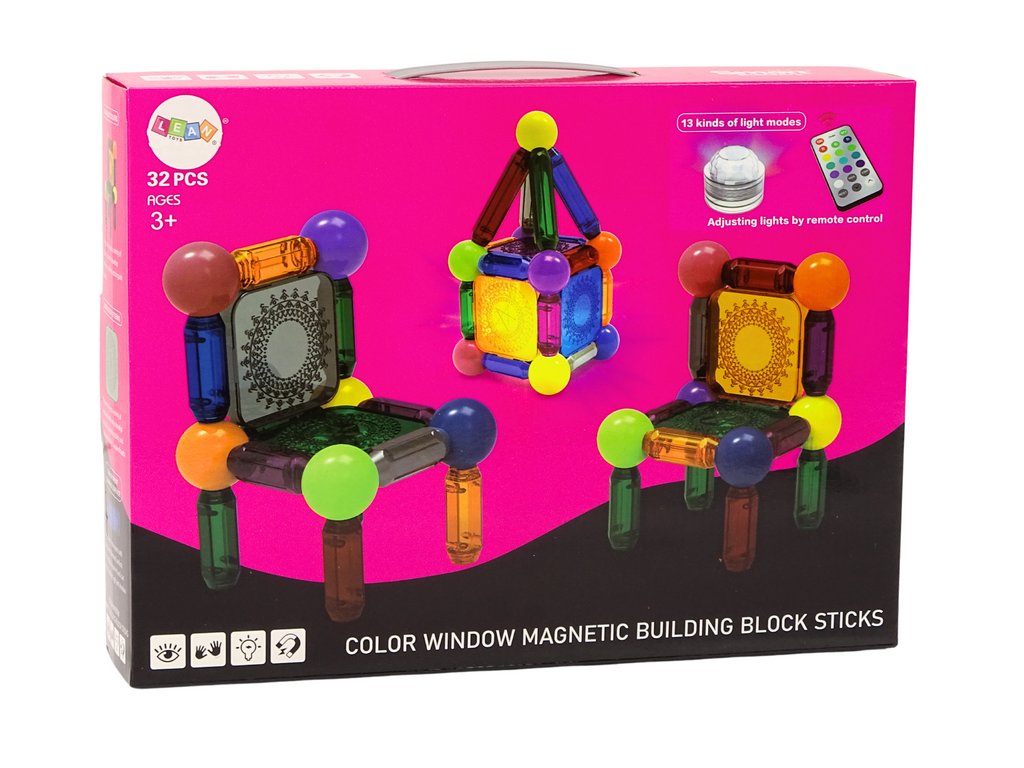 Mágneses kockák készlete 32 elemből álló háttérvilágítással