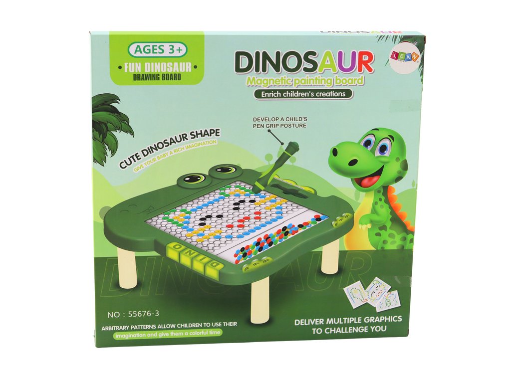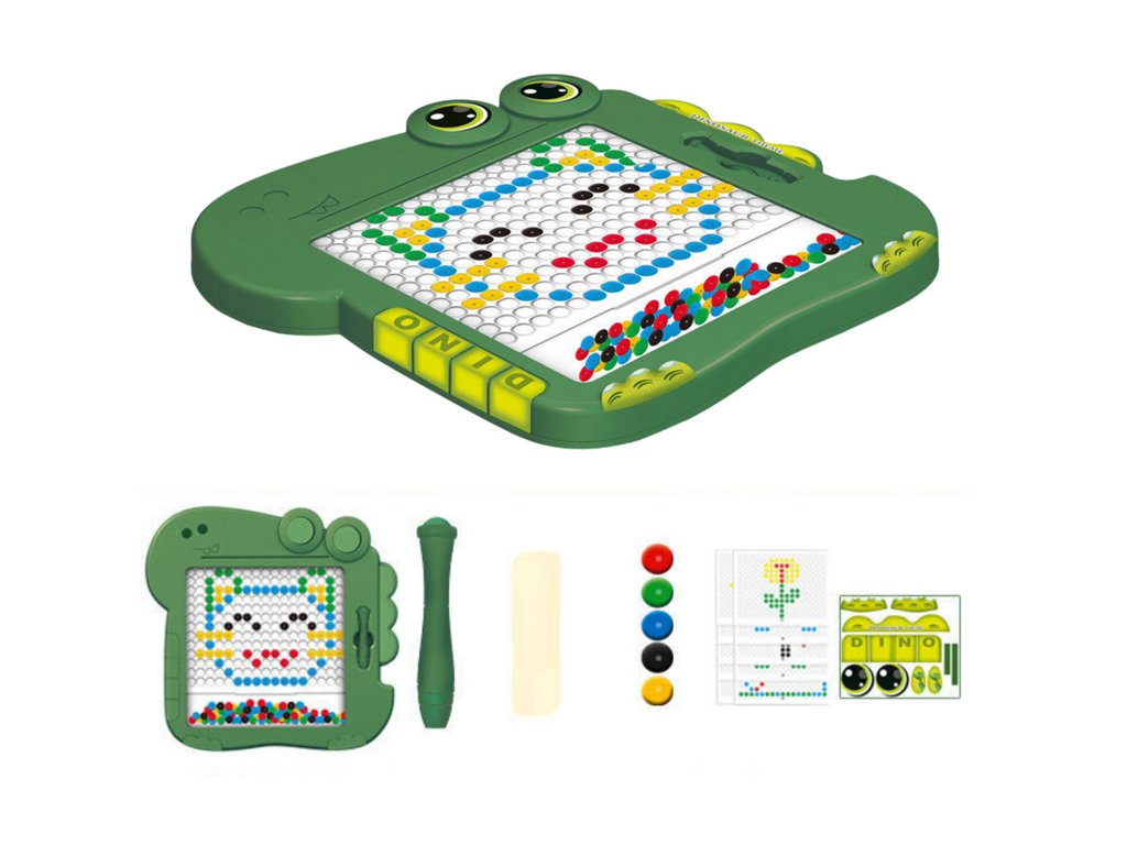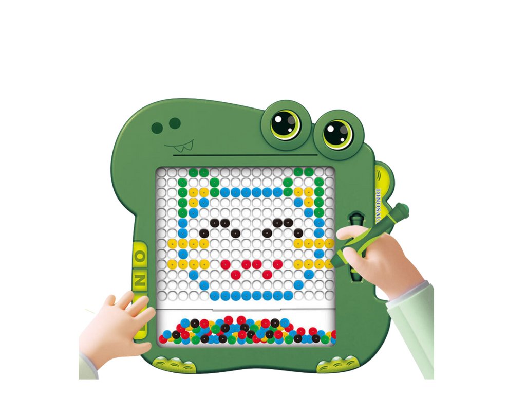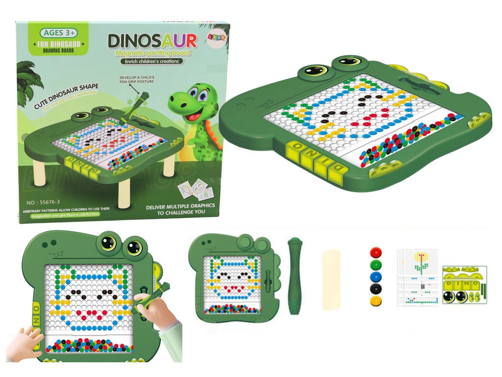 A dinoszaurusz alakú mágneses tábla több órányi kreatív szórakozást és tanulást biztosít a gyerekeknek. A színes mágneses gyöngyök és a praktikus mágneses ceruza lehetővé teszi egyedi képek és minták készítését, amelyek fejlesztik a gyerekek képzeletét, kézügyességét és térbeli képzeletét.