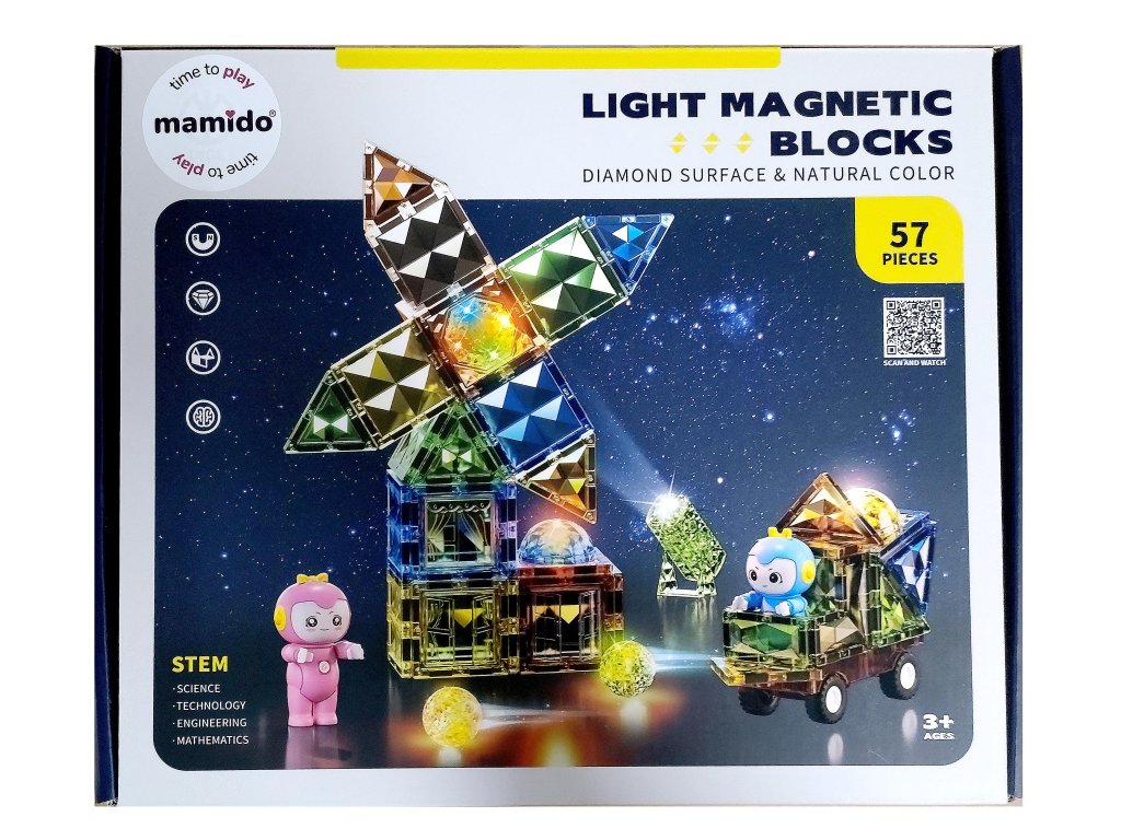 Mágneses kockák kiváló oktatási játékként szolgálnak, fejlesztik a gyermekek kreativitását, türelmet és koncentrációt tanítanak. A készletben található füzet útmutatókat tartalmaz a pályákhoz. Néhány komponens beépített világítással rendelkezik, hogy a játék ötletesebb legyen.