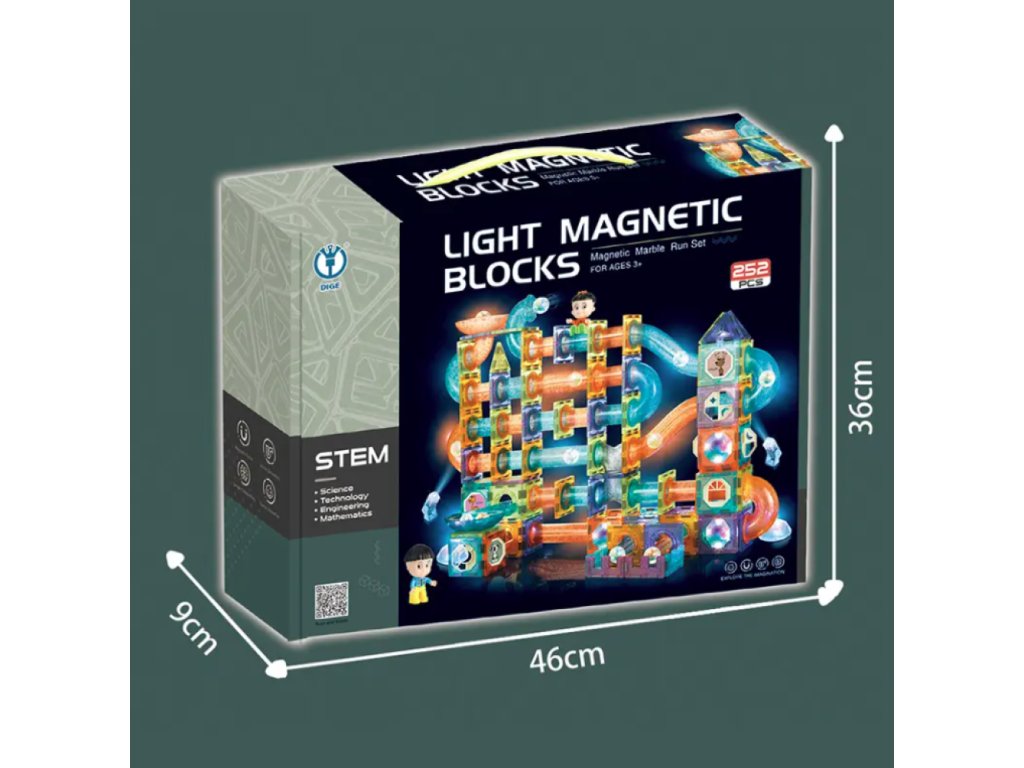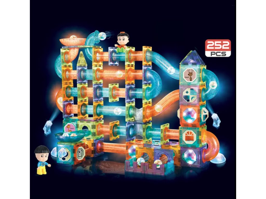 Mágneses világító építőkocka golyópálya 252 db XXL