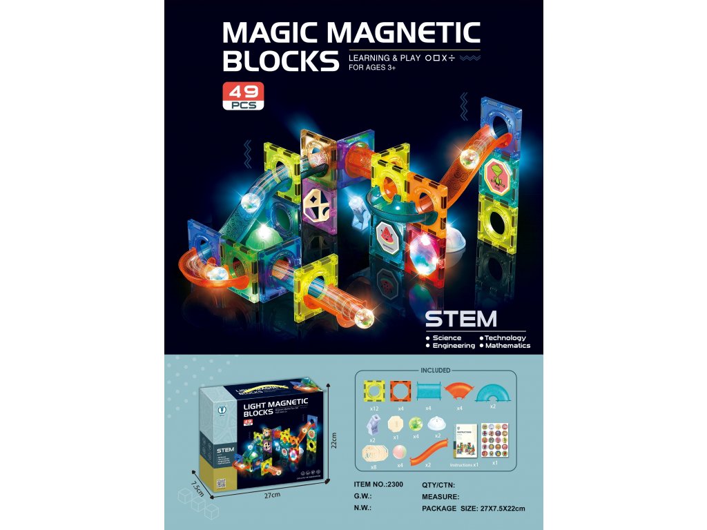 A mágneskockák kiváló oktatójáték, fejlesztik a gyerekek kreativitását, türelemre és koncentrációra tanítanak. A készlethez mellékelt füzet példákat mutat be a pályára. Egyes alkatrészek beépített világítással rendelkeznek, hogy a játék ötletes megjelenést biztosítson.