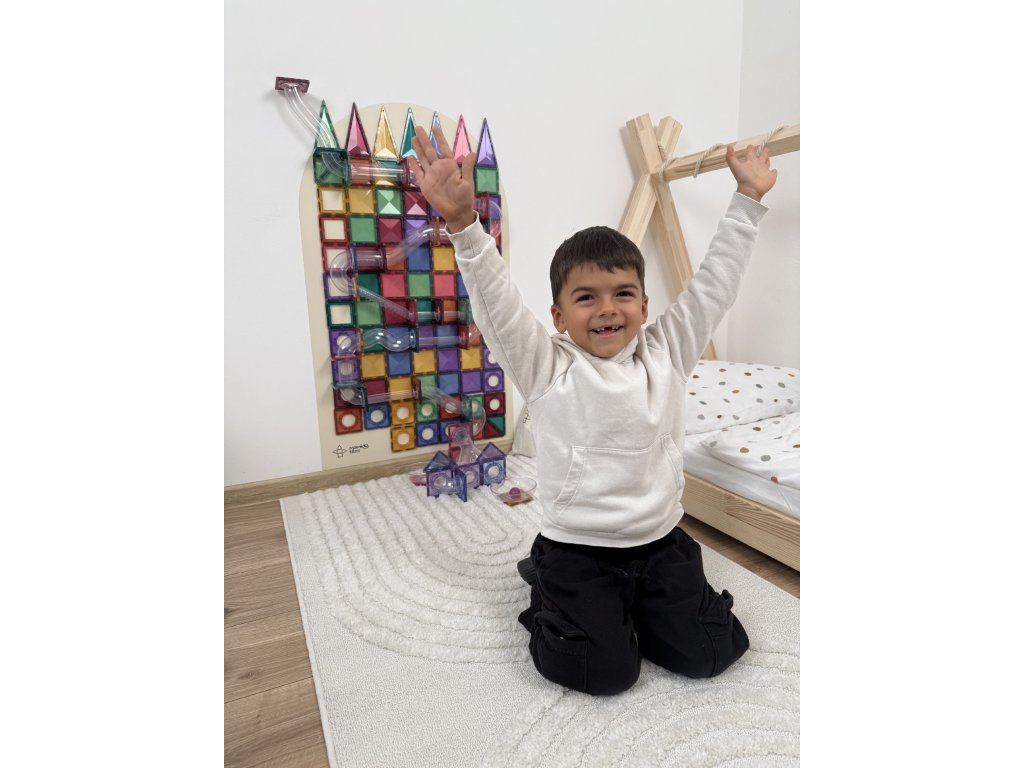 A Mamido Tiles mágneses tapéta a mágneses erőnek és az egyszerű telepítésnek köszönhetően még több szórakozást, alkotást és tanulást hoz a gyerekeknek. Egyszerűen csak ragaszd fel egy sima falra, és azonnal interaktív teret hozhatsz létre mágneseknek, krétával való rajzoláshoz, mosható színekkel való festéshez és táblafilccel való íráshoz.