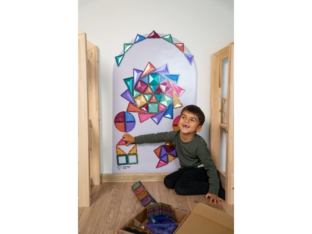 A Mamido Tiles mágneses tapéta a mágneses erőnek és az egyszerű telepítésnek köszönhetően még több szórakozást, alkotást és tanulást hoz a gyerekeknek. Egyszerűen csak ragaszd fel egy sima falra, és azonnal interaktív teret hozhatsz létre mágneseknek, krétával való rajzoláshoz, mosható színekkel való festéshez és táblafilccel való íráshoz.